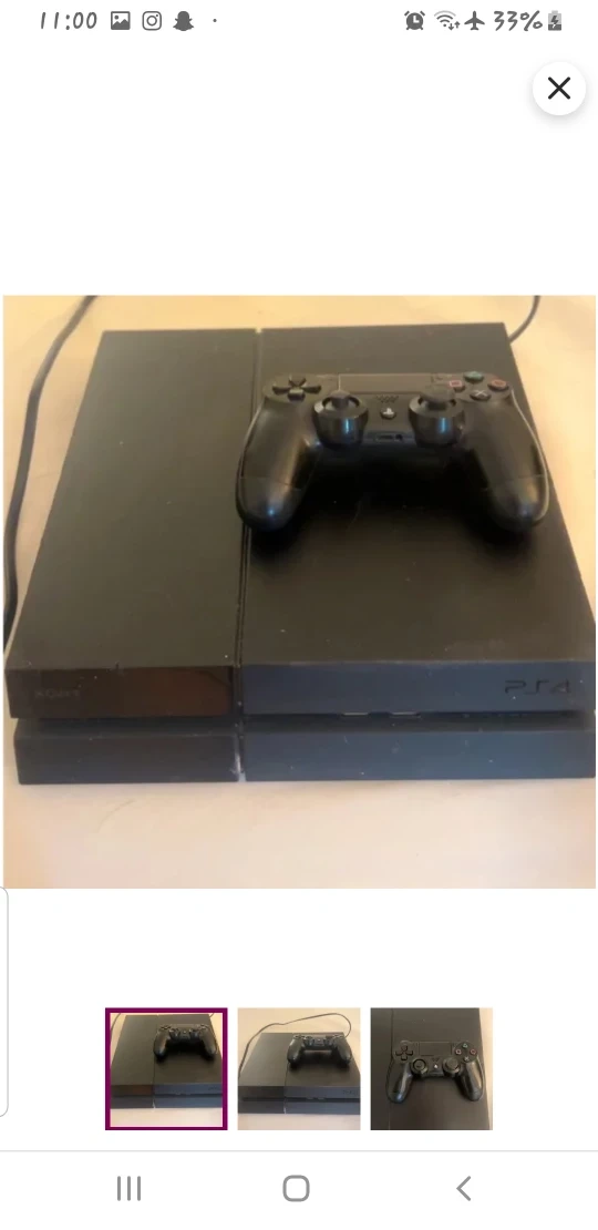 Black PS4 console. One controller included. Good condition.Three games included with online access and second controller available on request