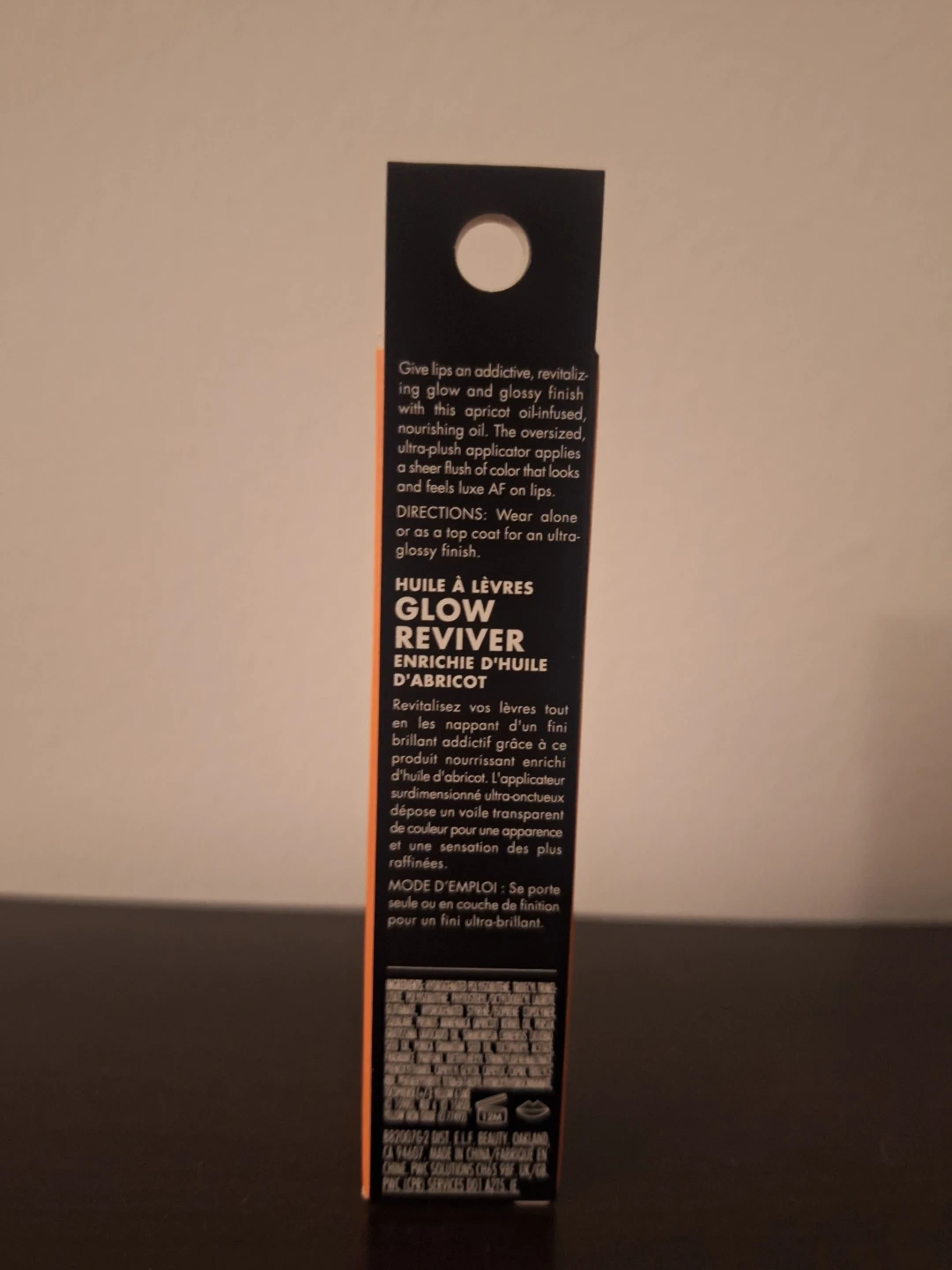 This e.l.f. Glow Reviver Lip Oil comes infused with apricot oil. It's a 0.25 fl oz (7.6 ml) size. The lip oil is designed to give lips a shiny glow and glossy finish.