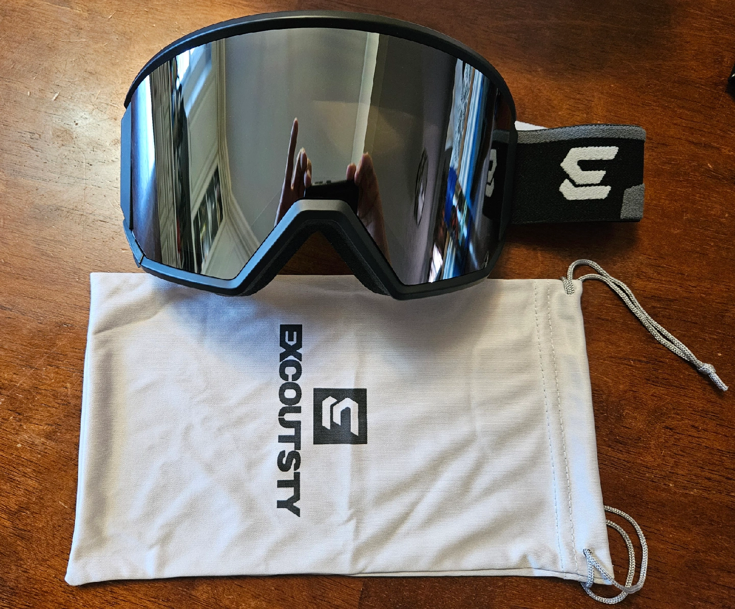 Selling a pair of Excoutsty ski goggles. Brand new, never used, but no box. Just have the plastic bag and paper covering. Storage bag included. Great for hitting the slopes this winter!