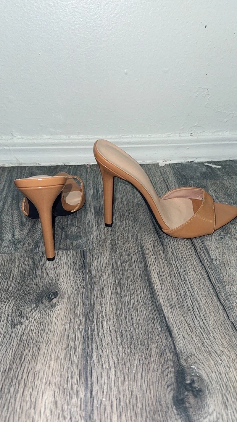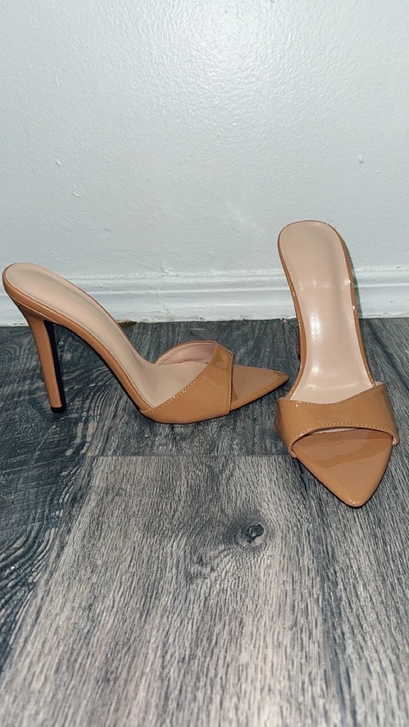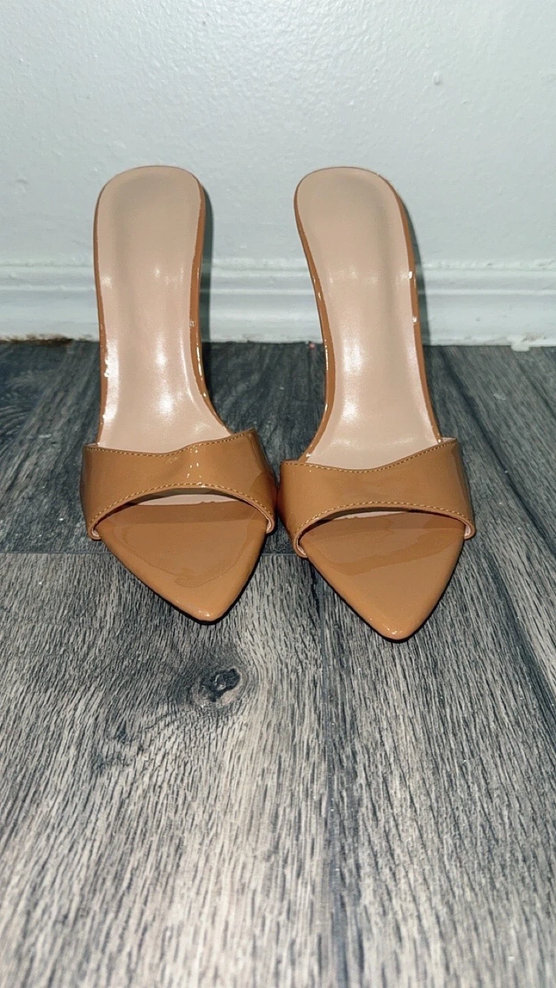 Women's Tan Pointed Toe Stiletto Mules - Size 8