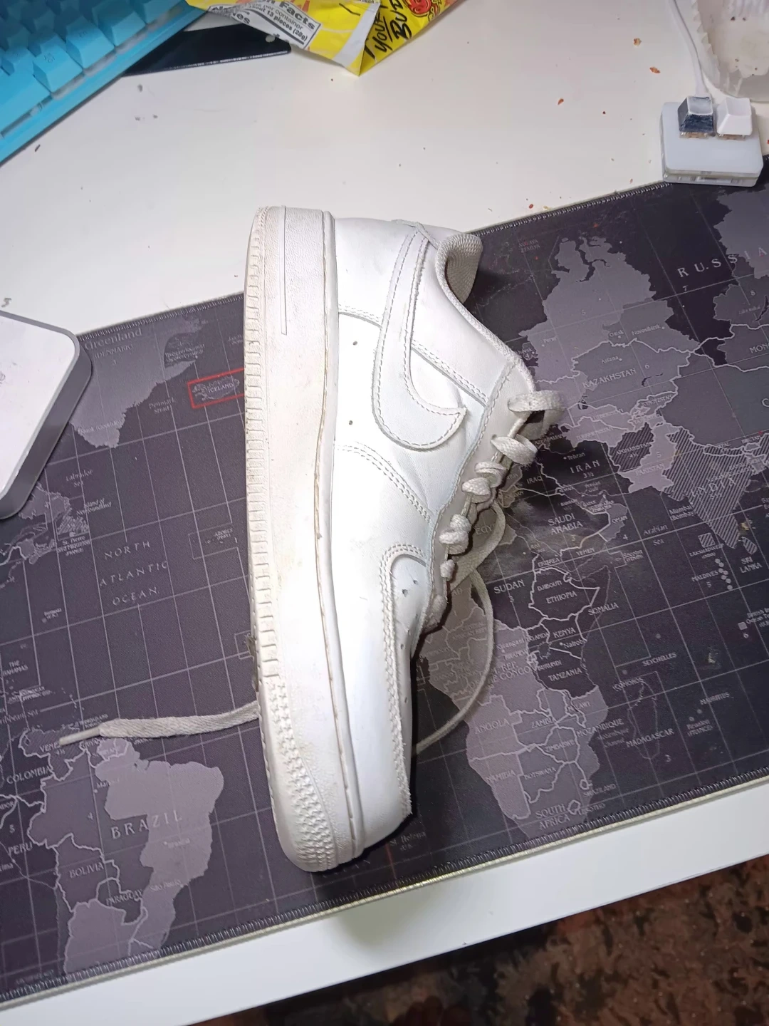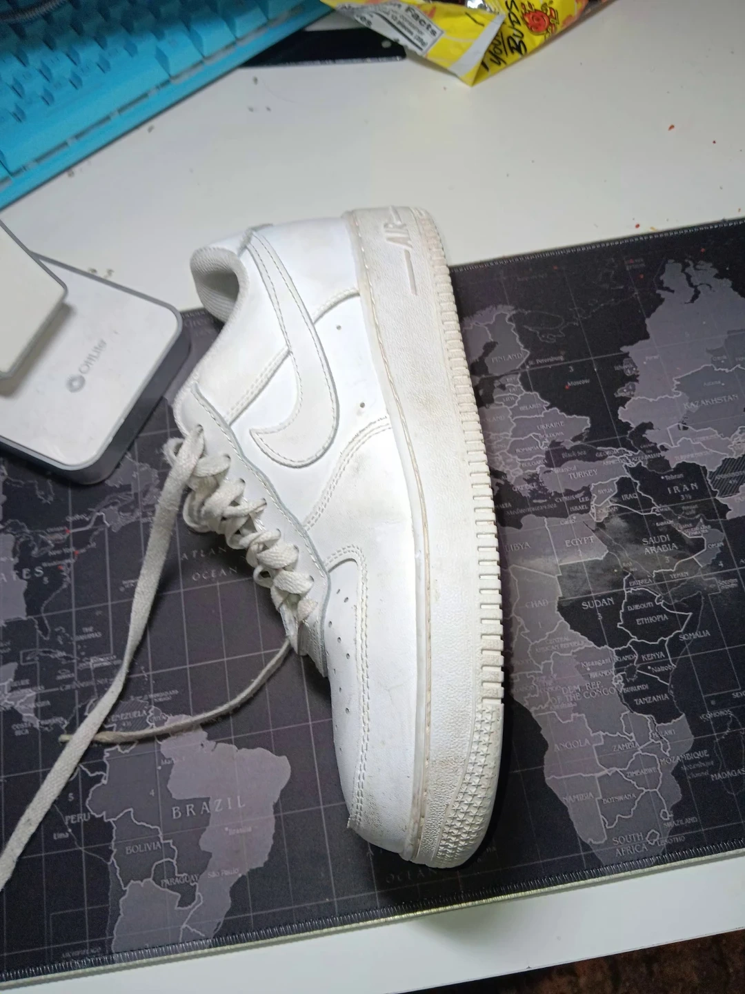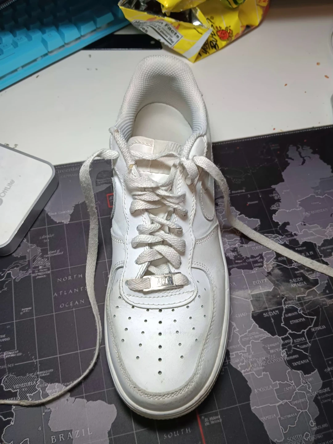 Classic white Nike Air Force 1 sneakers. Leather upper with lace-up closure. Rubber sole.