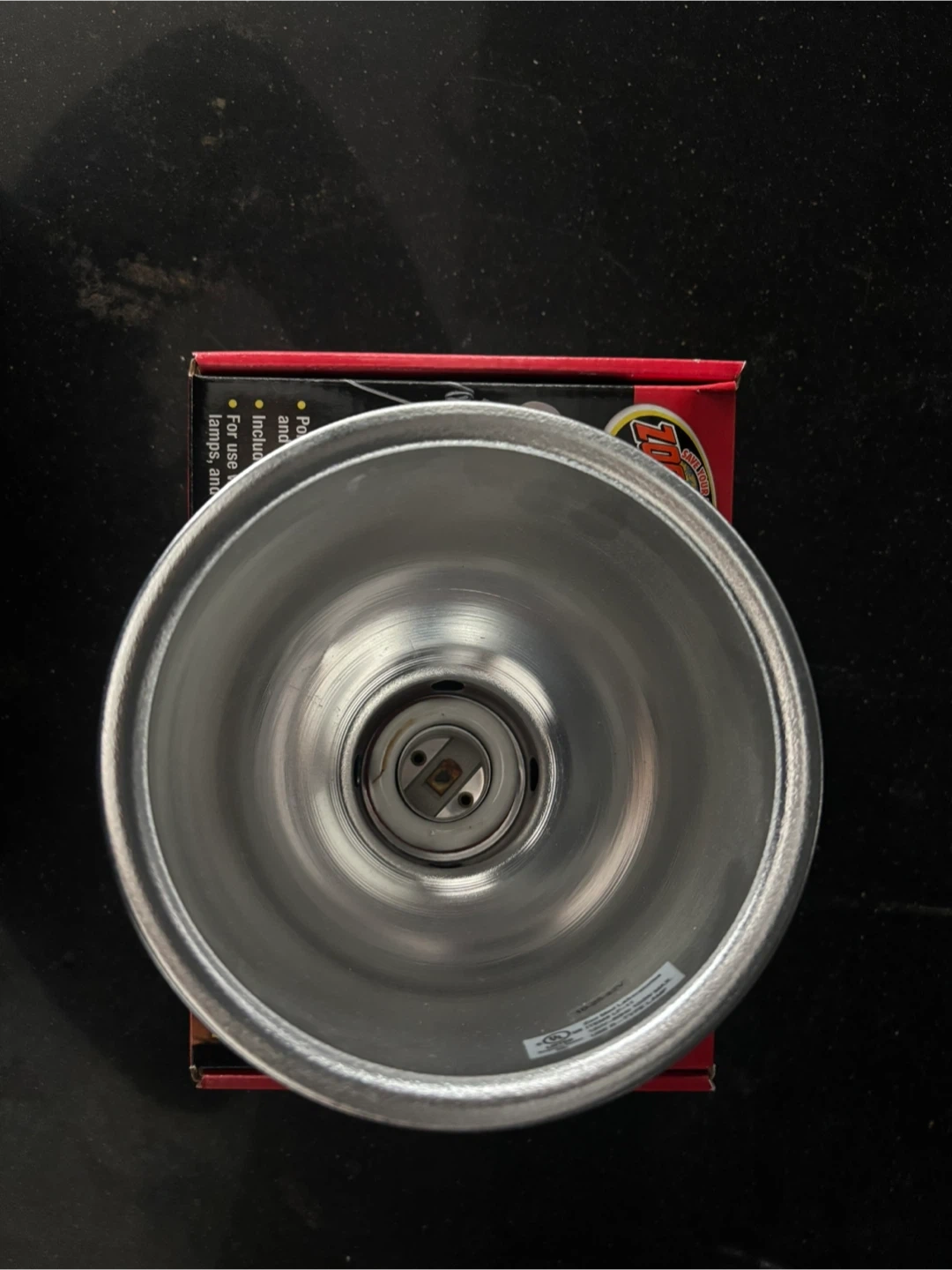 This clamp lamp features a polished aluminum dome for maximum light and heat output. It includes an on/off switch for greater convenience. It's suitable for use with incandescent heat lamps, halogen lamps, and even mercury vapor lamps. Comes with a free new bulb! 5 1/2 inch diameter