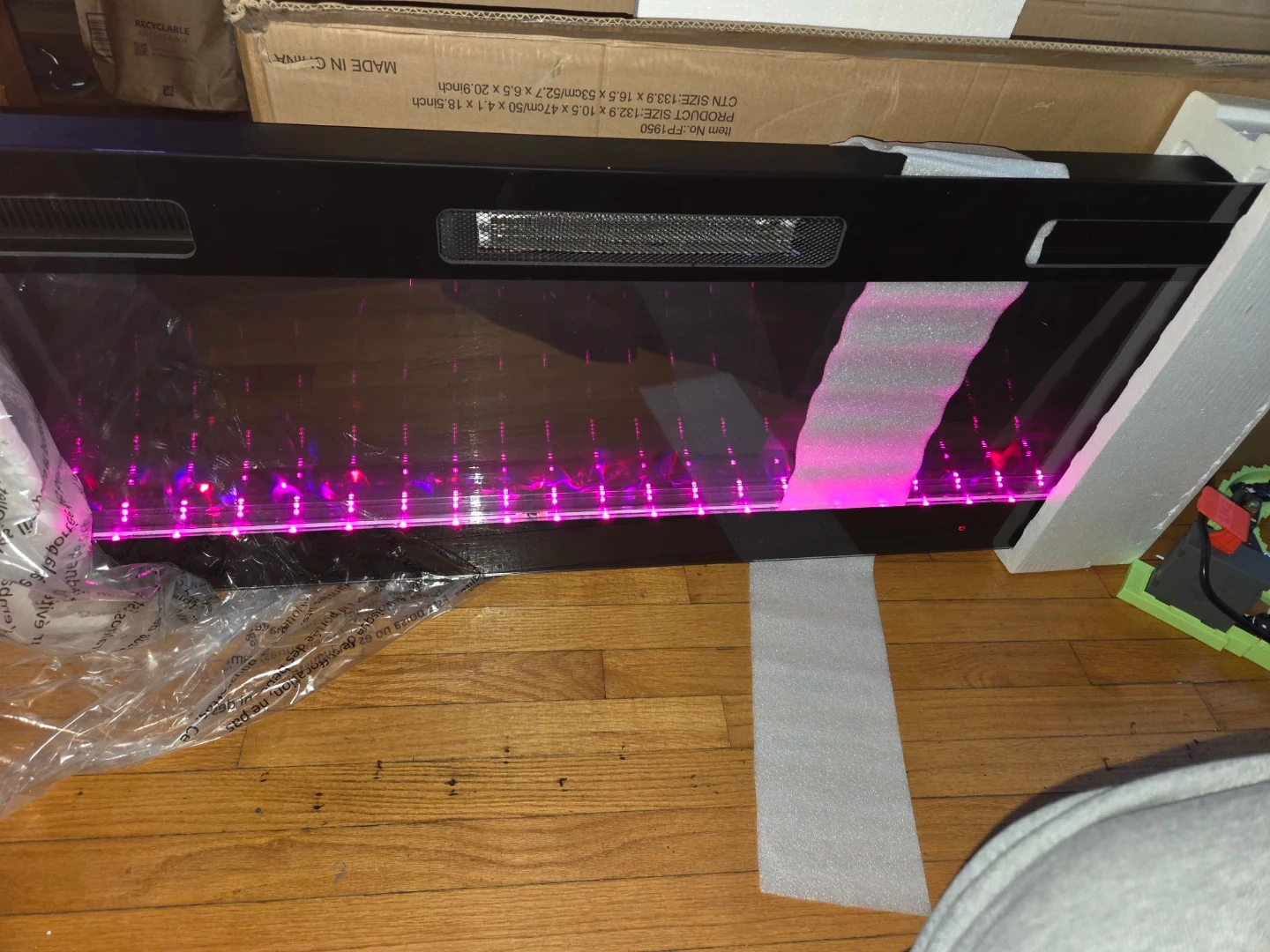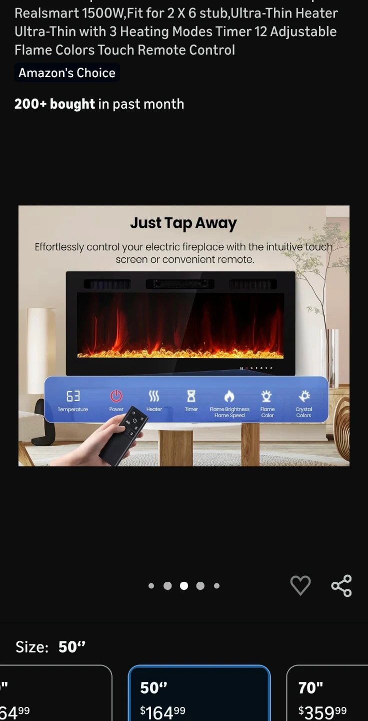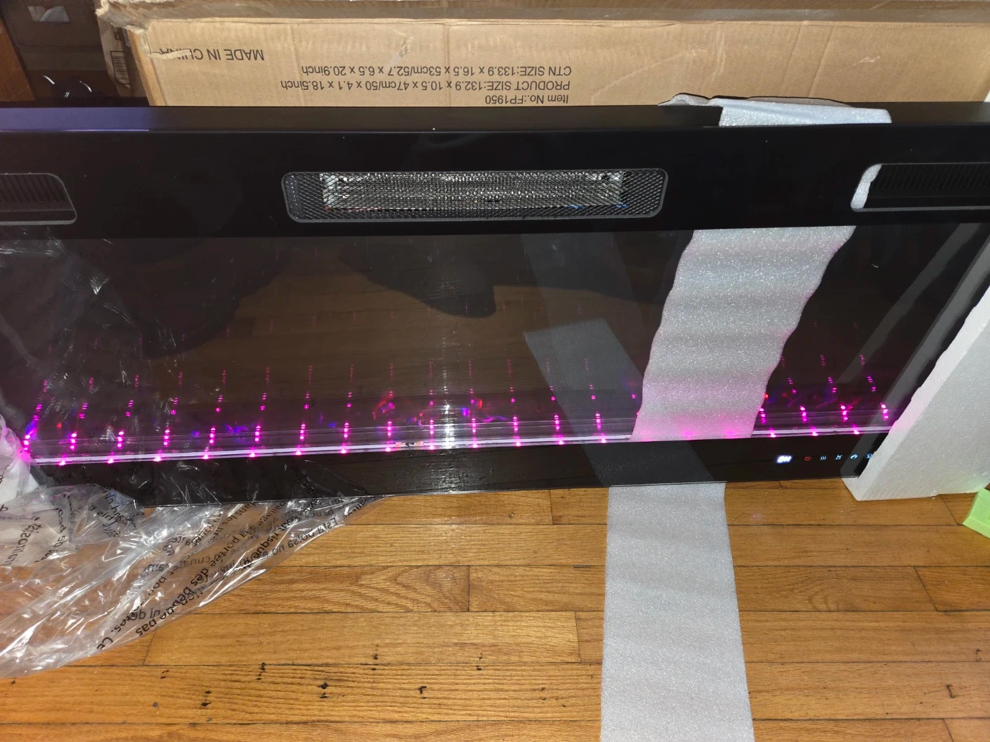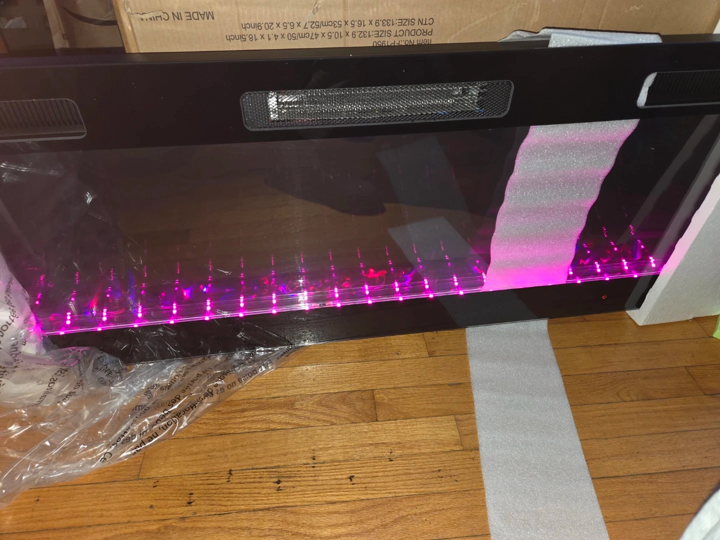 (Mounting Brackets is missing ) Selling a Realsmart 50-inch wall mount insert fireplace! It features a sleek, space-saving design with an ultra-thin profile. It has a large tempered glass display and adjustable flame colors. It also comes with a remote control!