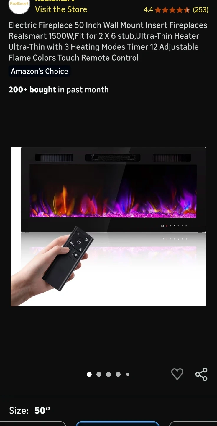 Realsmart 50 Inch Wall Mount Electric Fireplace