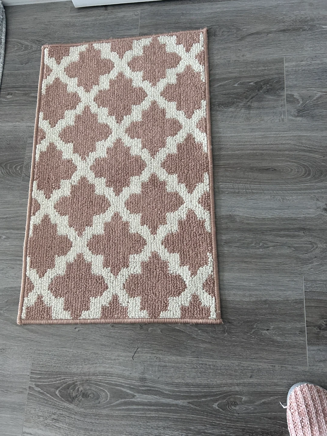 Add a touch of style to your home with this accent rug. It features a classic peachy and white quatrefoil pattern, perfect for any room. The rug is made of durable material for long-lasting use. It's a great size for entryways or hallways!