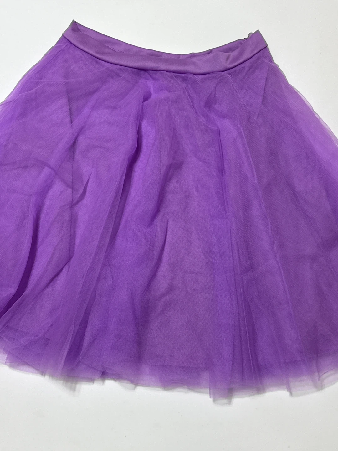 A lovely purple tulle skirt! This skirt is perfect for adding a touch of whimsy to any outfit. The lightweight material makes it comfortable to wear, and the vibrant colour is sure to turn heads. It's in great condition and ready for a new owner