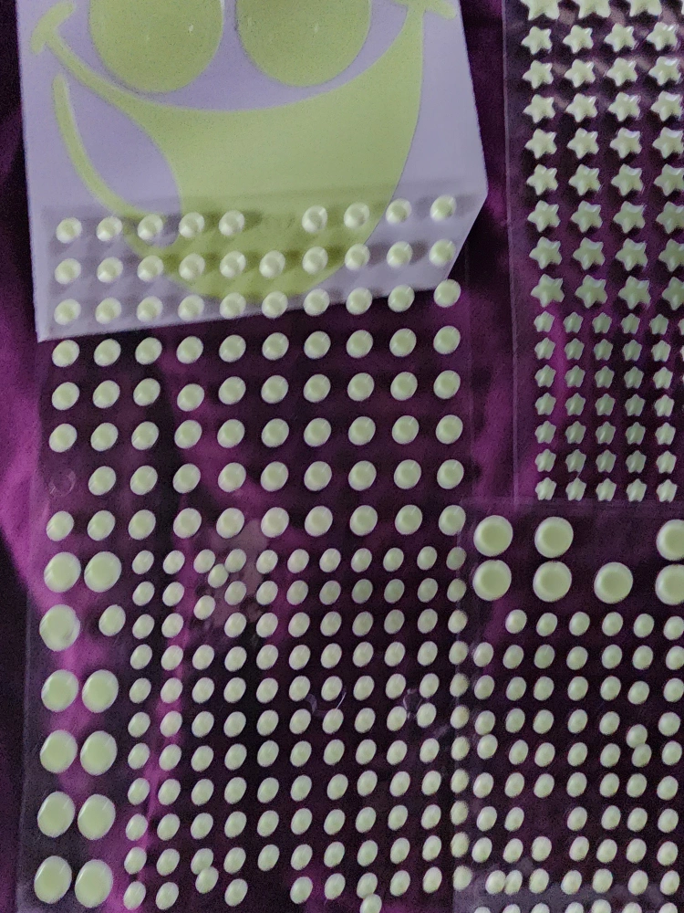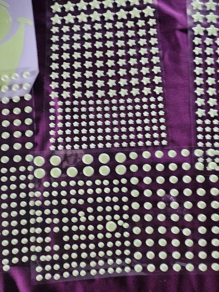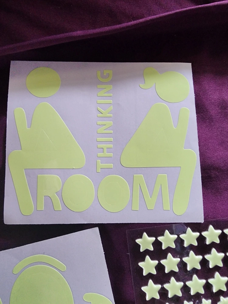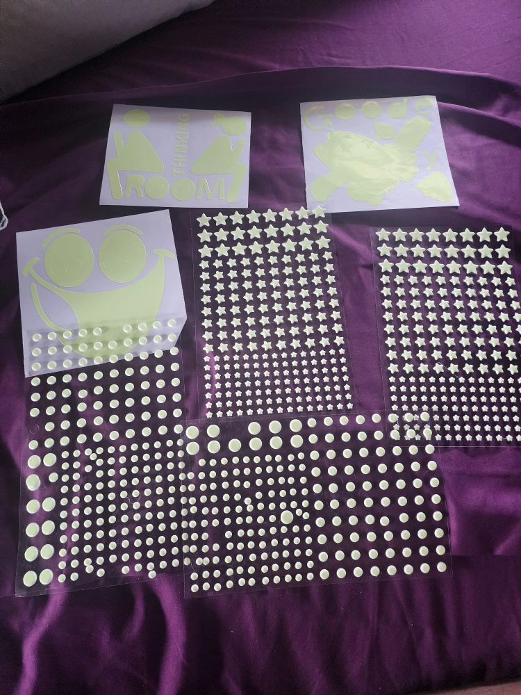Add a fun touch to any room with these glow-in-the-dark wall stickers! Over 400.They include smiley faces, stars, dots, and even restroom signs. Perfect for kids' rooms or adding a whimsical touch to your space.