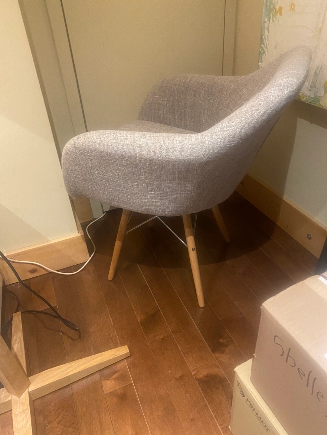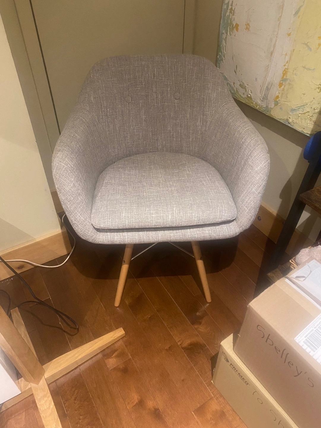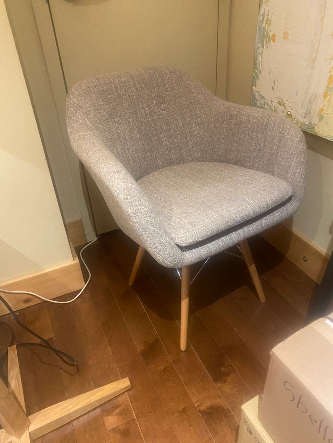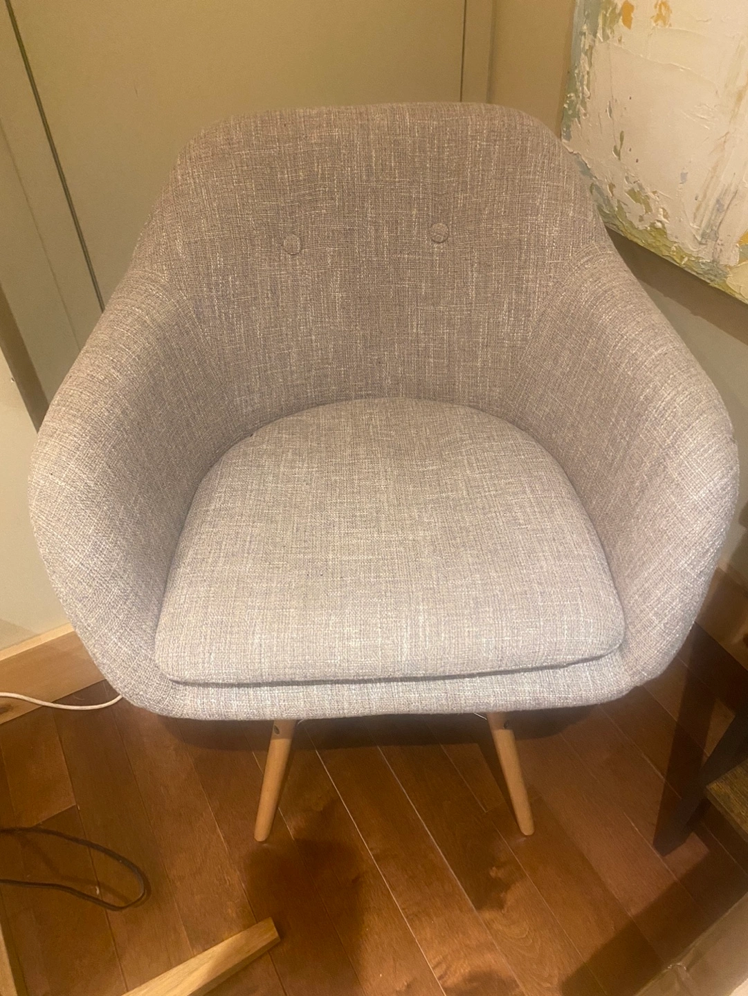 Grey Fabric Accent Chair with Wooden Legs