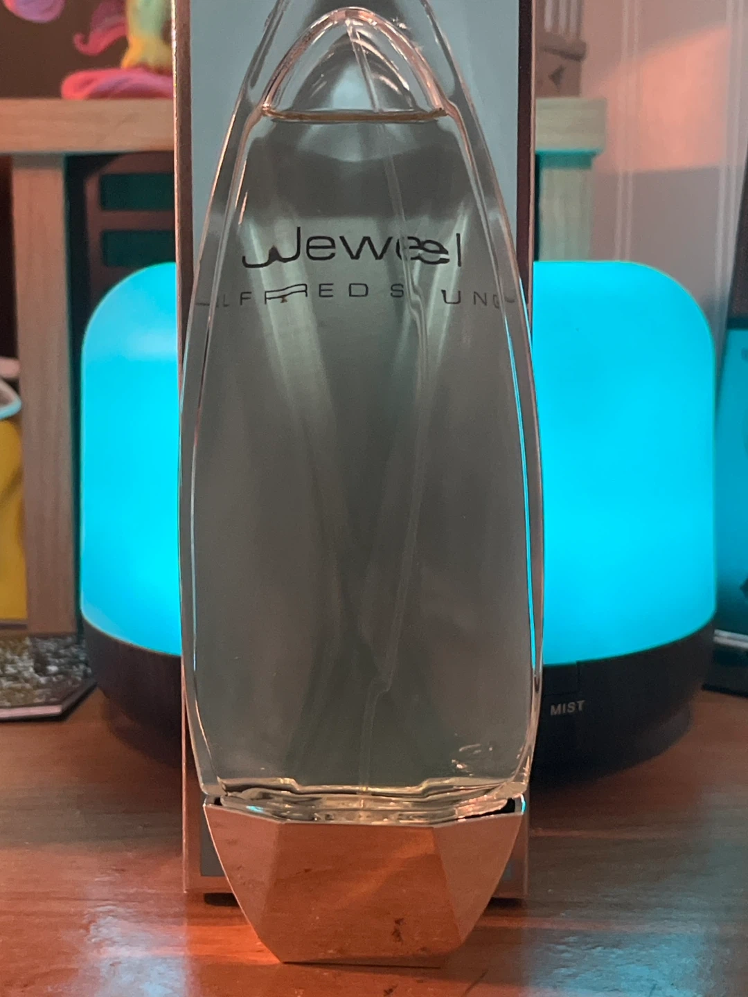 Selling a bottle of Alfred Sung Jewel perfume. It's a lovely fragrance! The unique bottle design is sure to stand out on your vanity or dresser