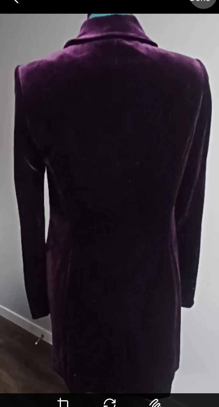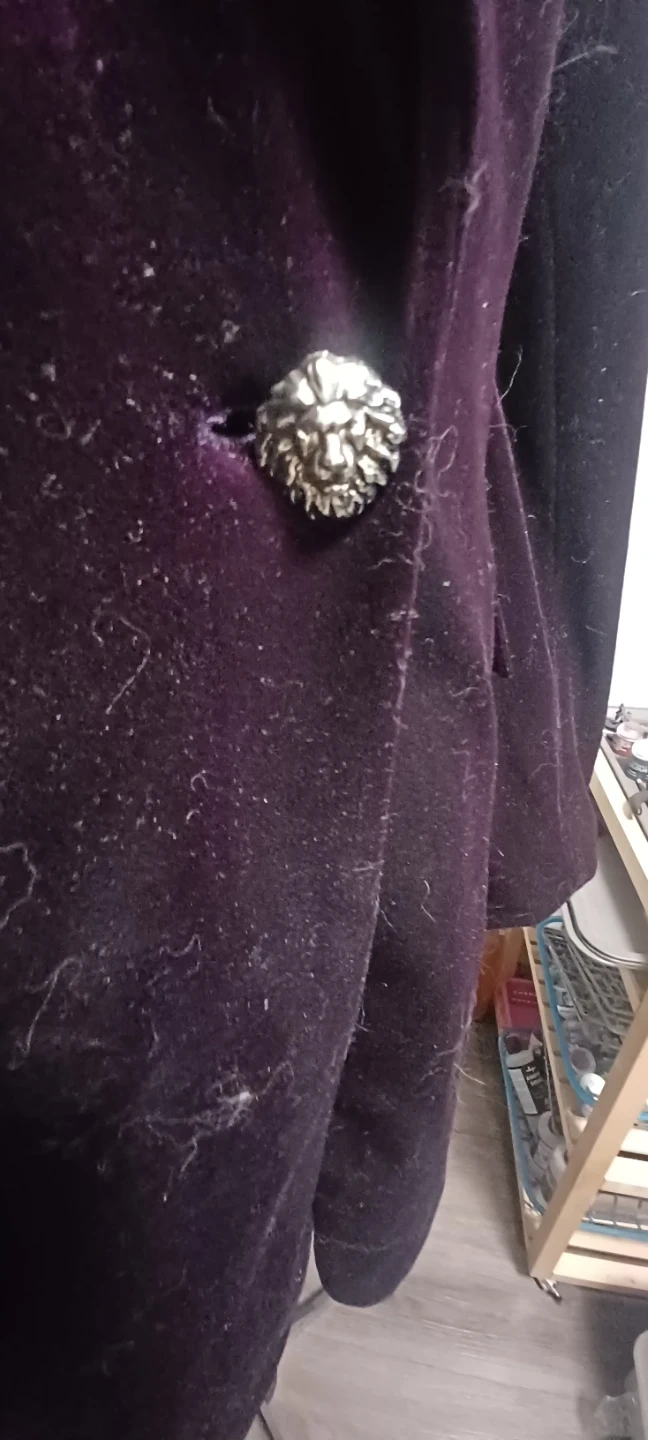 This Calvin Klien purple velvet blazer has an additional distinctive lion head button closure. The blazer has a classic lapel, 3 front pockets and falls just below the butt. Great to wear over short dresses. Will lint roll upon purchase.