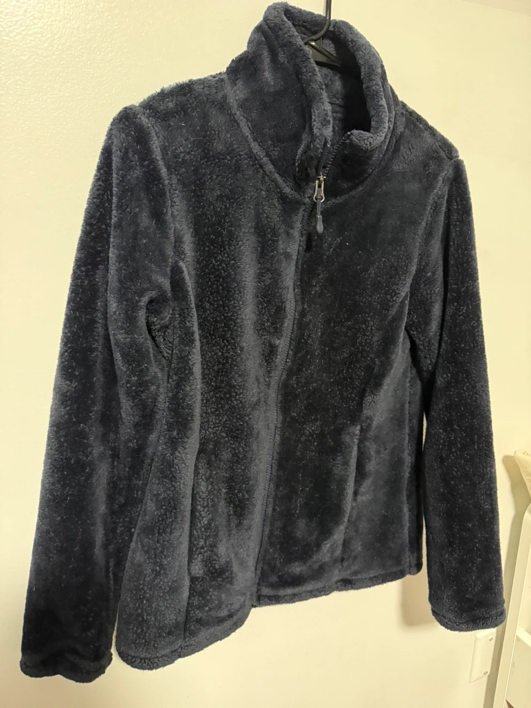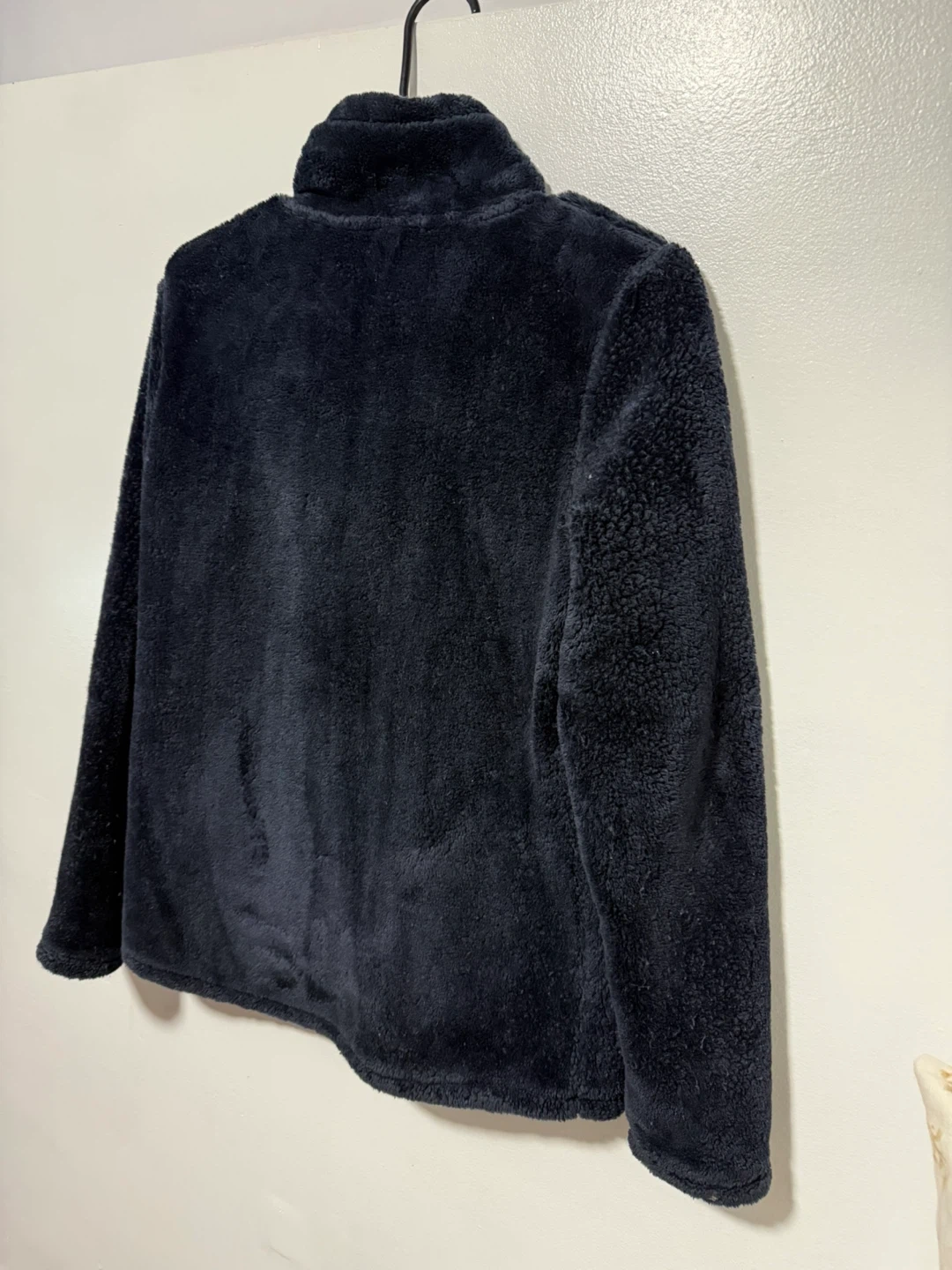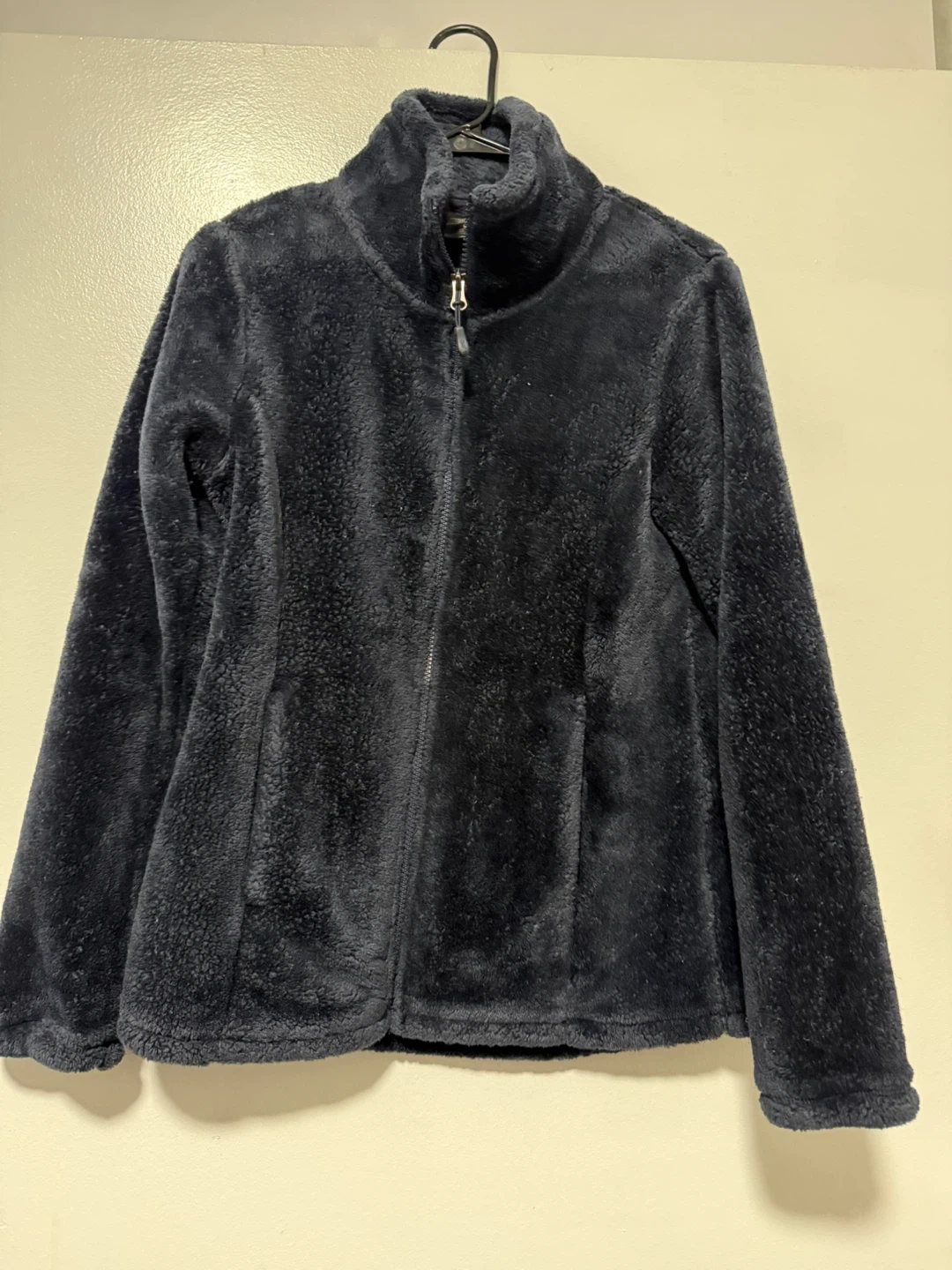 Cozy up with this super soft fleece jacket! It's a lovely navy blue colour and perfect for layering on those cooler days. It has a full zip and a comfy high neck.
