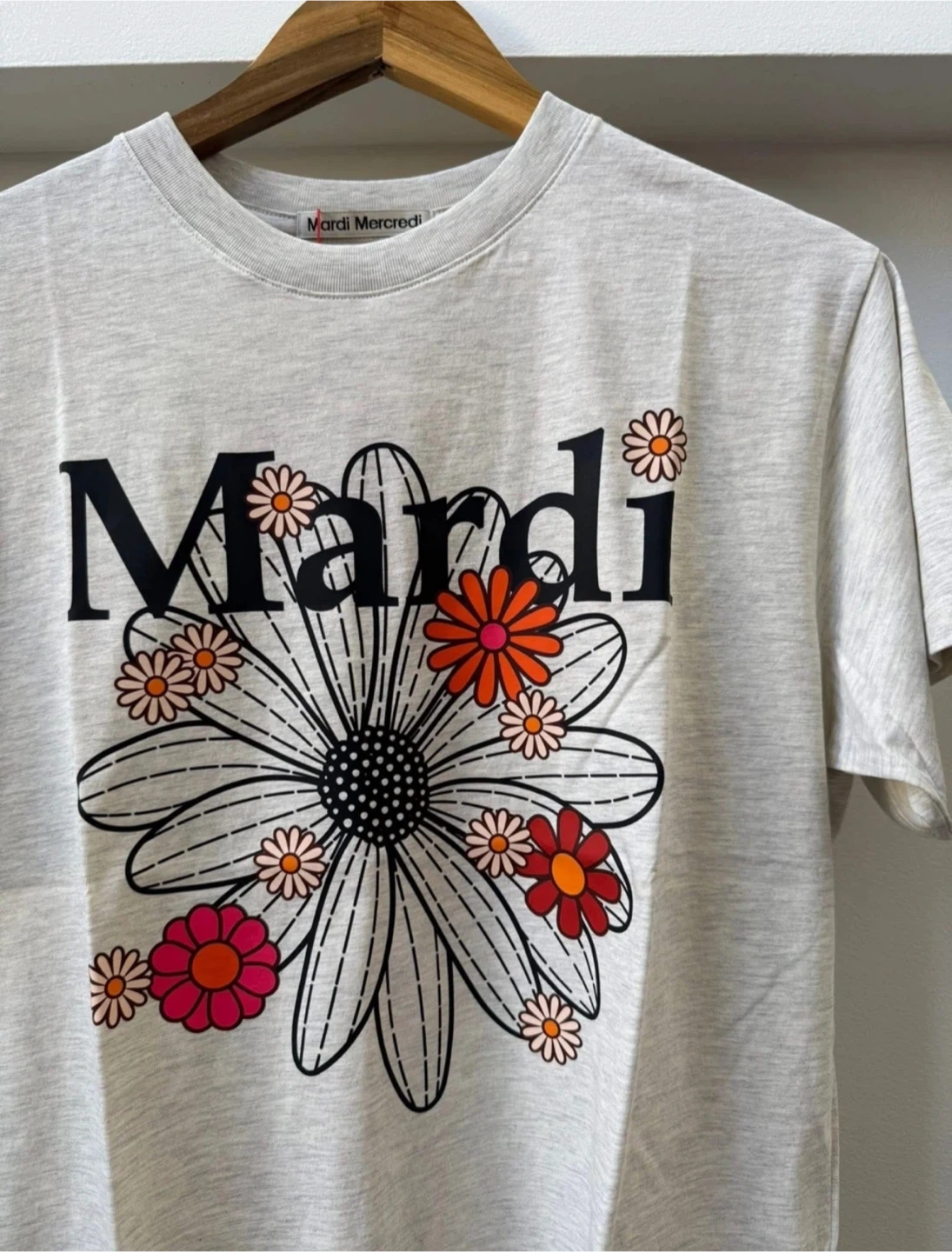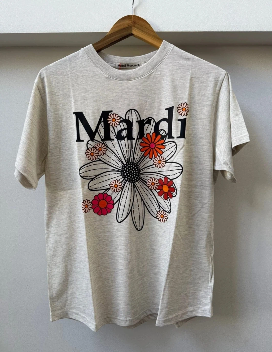 Selling a Mardi Mercredi t-shirt! It features a super cute floral design on a light grey background. Perfect for adding a touch of fun to your wardrobe. Size fits medium to XL, please refer to the pictures!