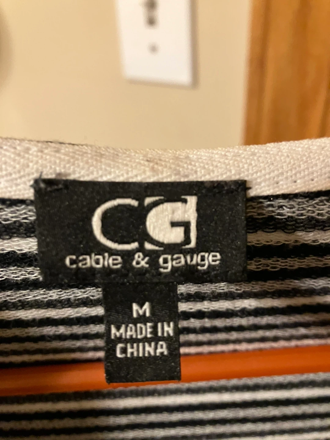 Selling a Cable & Gauge light weight black and white striped sweater, size medium. It's in great condition. Perfect for layering!