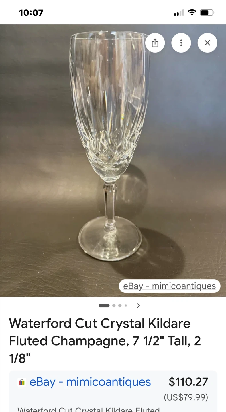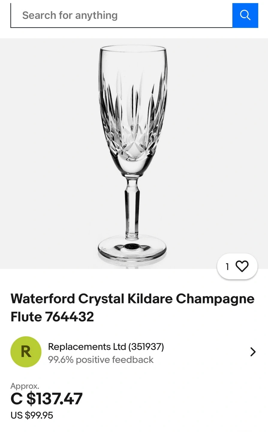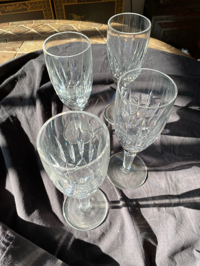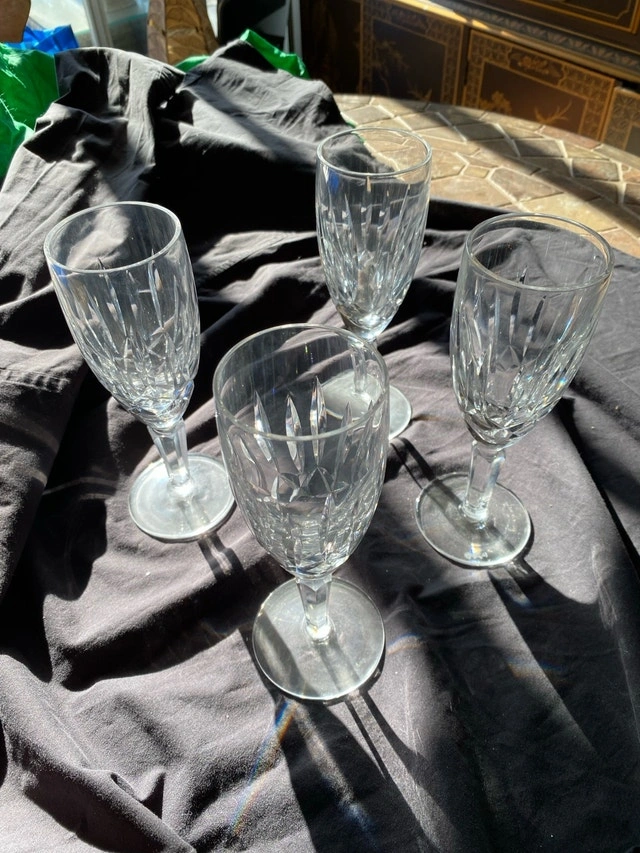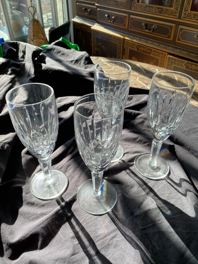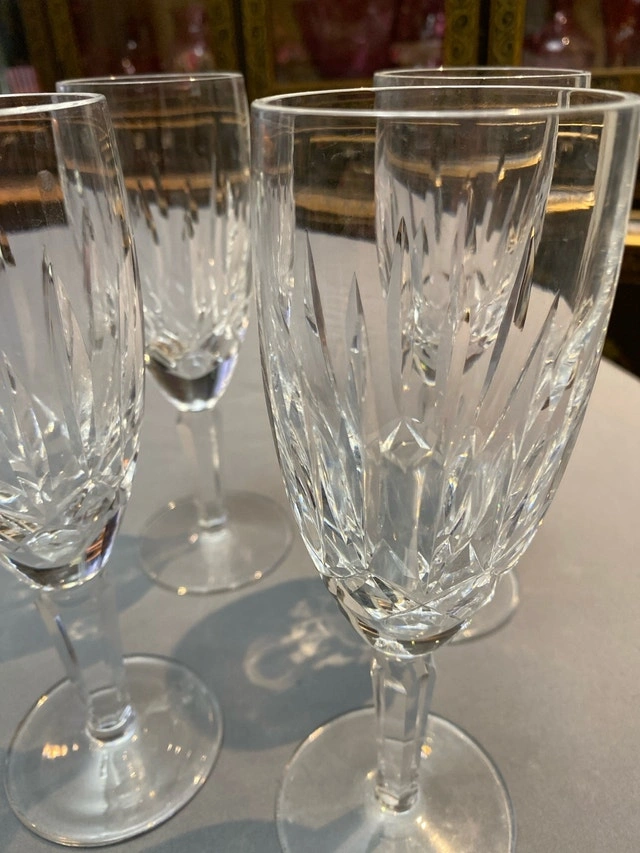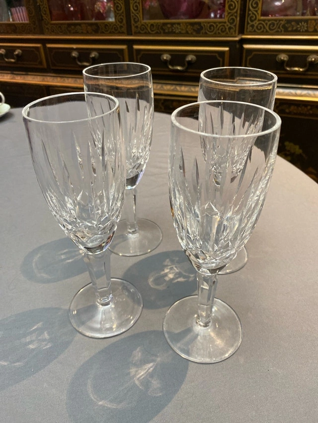 Elegant set of two Waterford Crystal Kildare fluted champagne glasses. Perfect for celebrating special occasions in style. Stands 7.5 inches tall, adding sophistication to any event or collection. This is a discontinued pattern, originally produced in the 1970s through early 2000s.