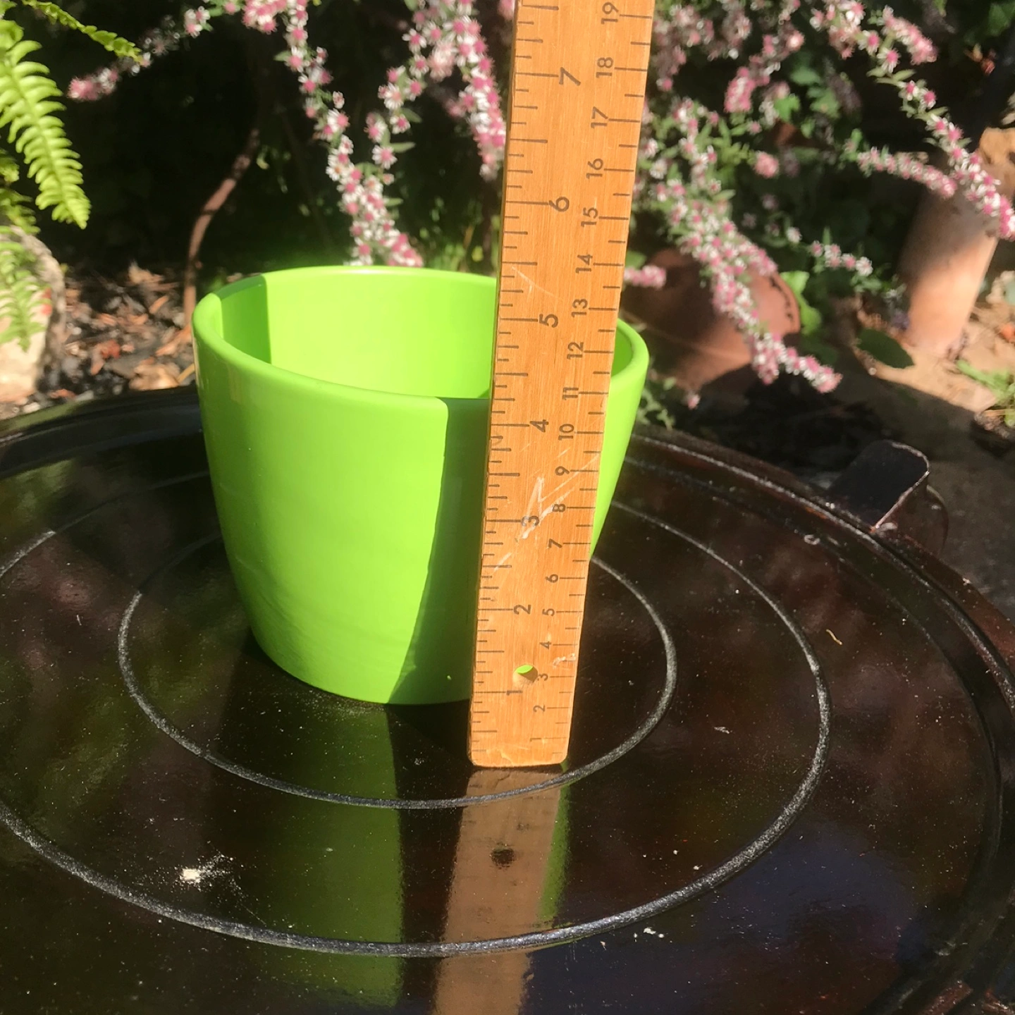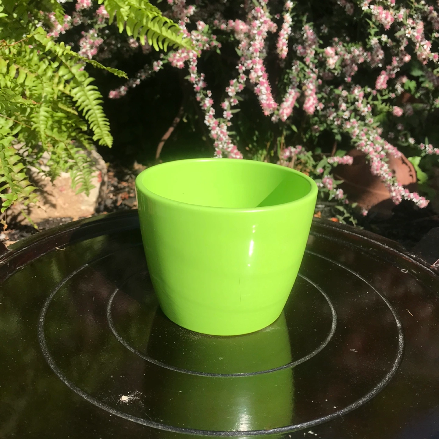 Small, round lime green ceramic planter. Perfect for succulents or small plants. Approximately 4 inches in diameter. Yonge/Davisville pick up. Plant NOT included.