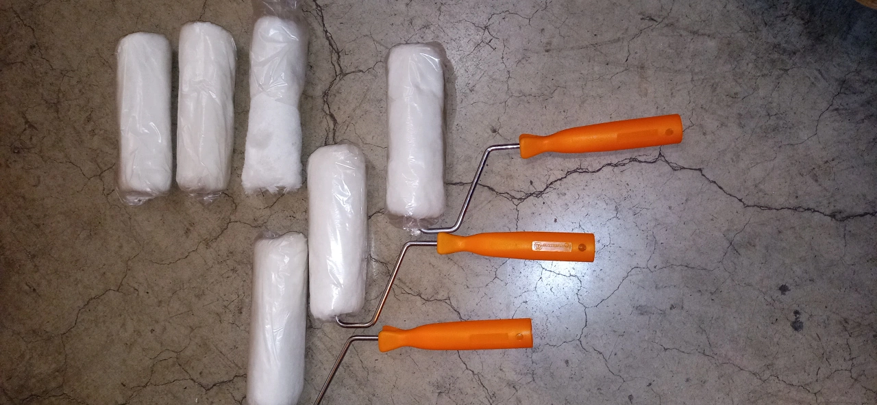 20 paint rollers with handles. plus 20 extra rollers These rollers are individually wrapped. price for whole box. 9" in length. Medium thickness. Great for the non clean up person!