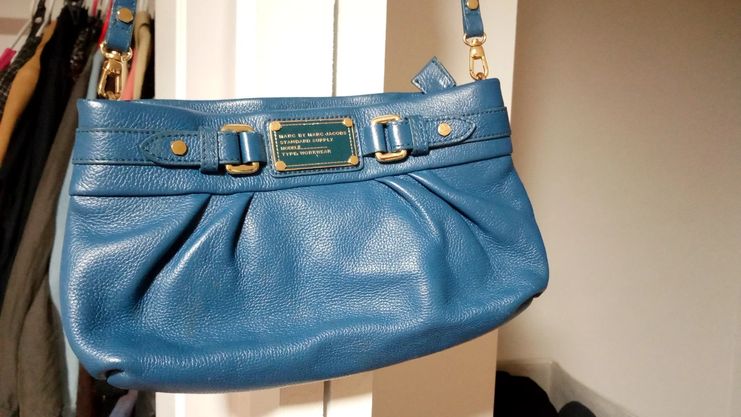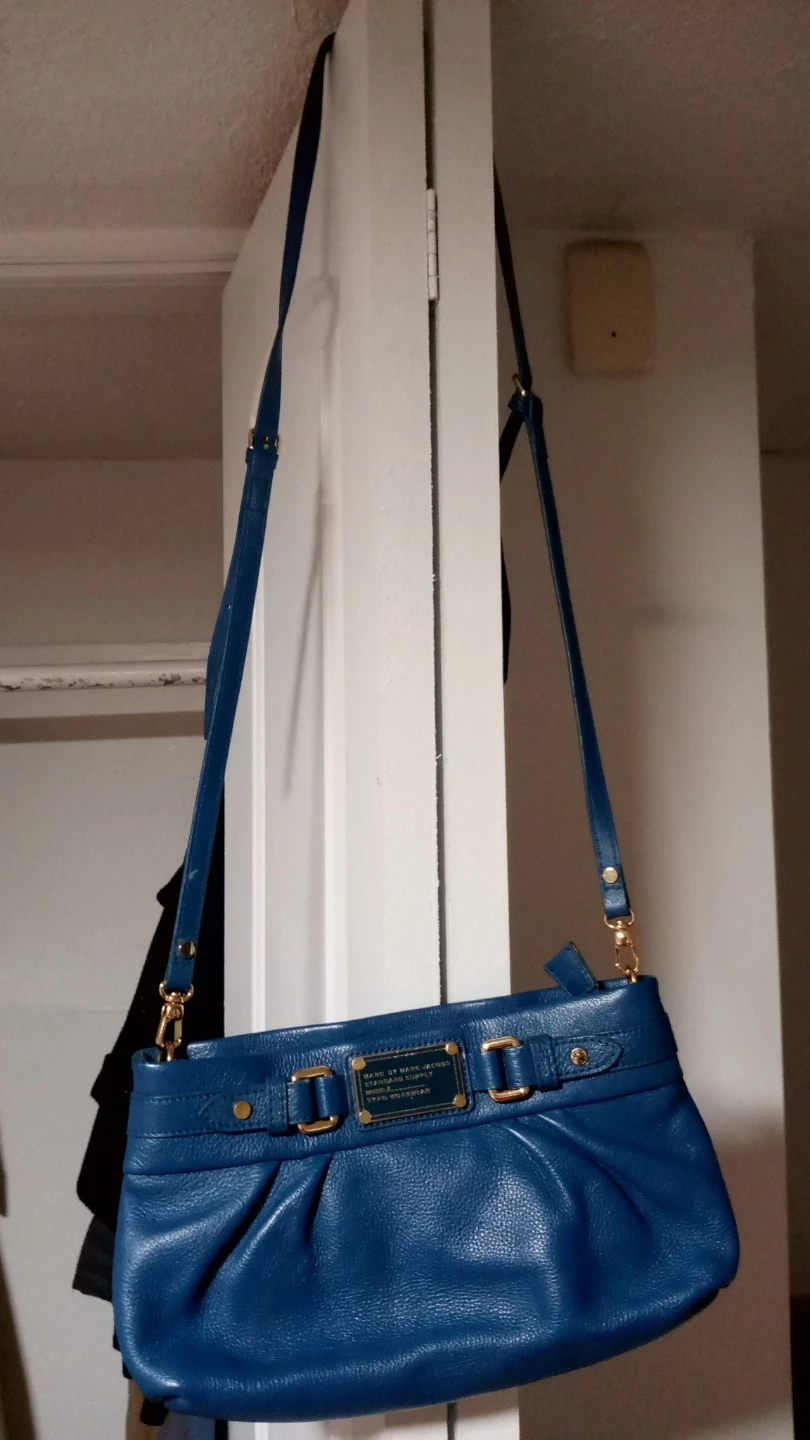This Marc by Marc Jacobs bag is made of blue leather. It's a "Standard Supply" model. This crossbody bag is great for carrying essentials.