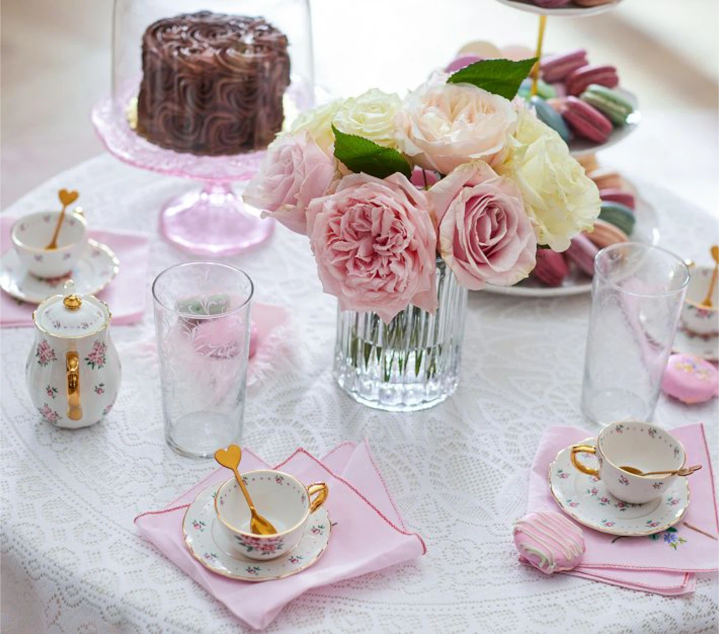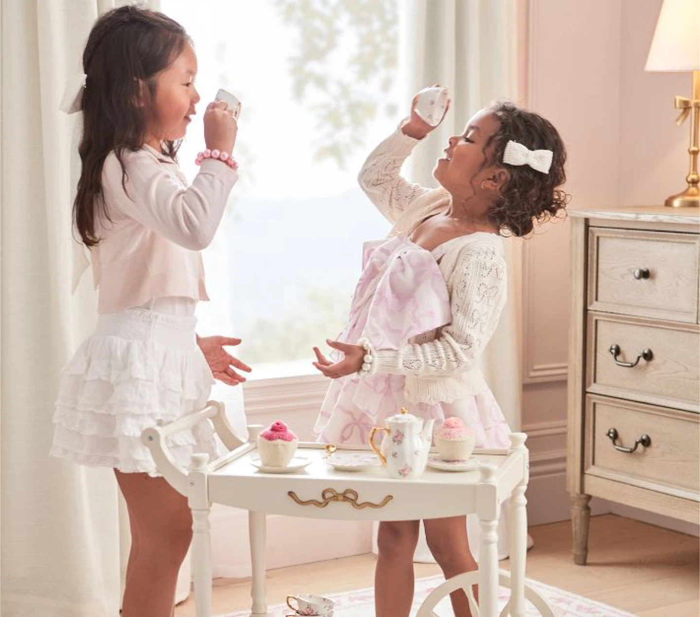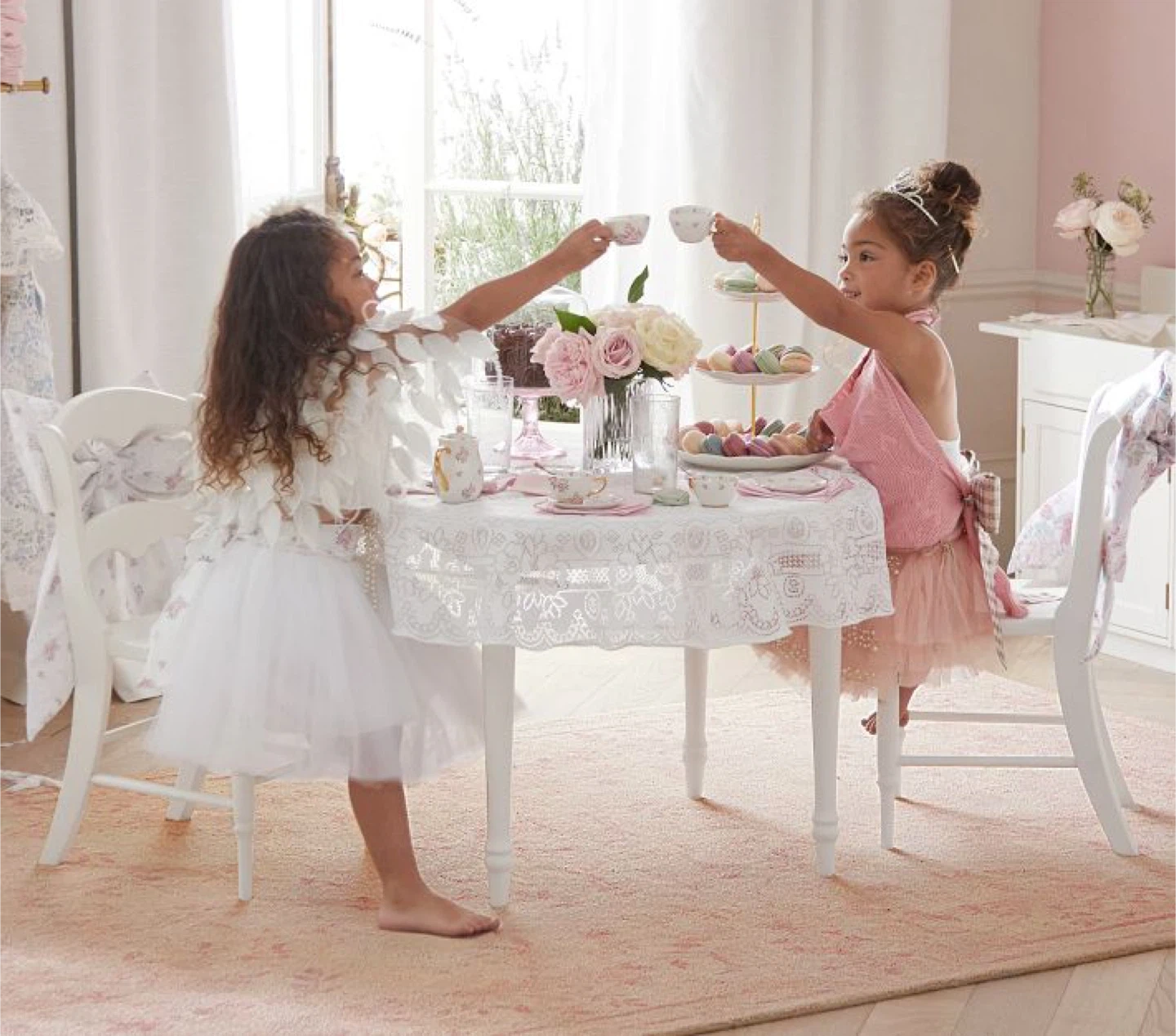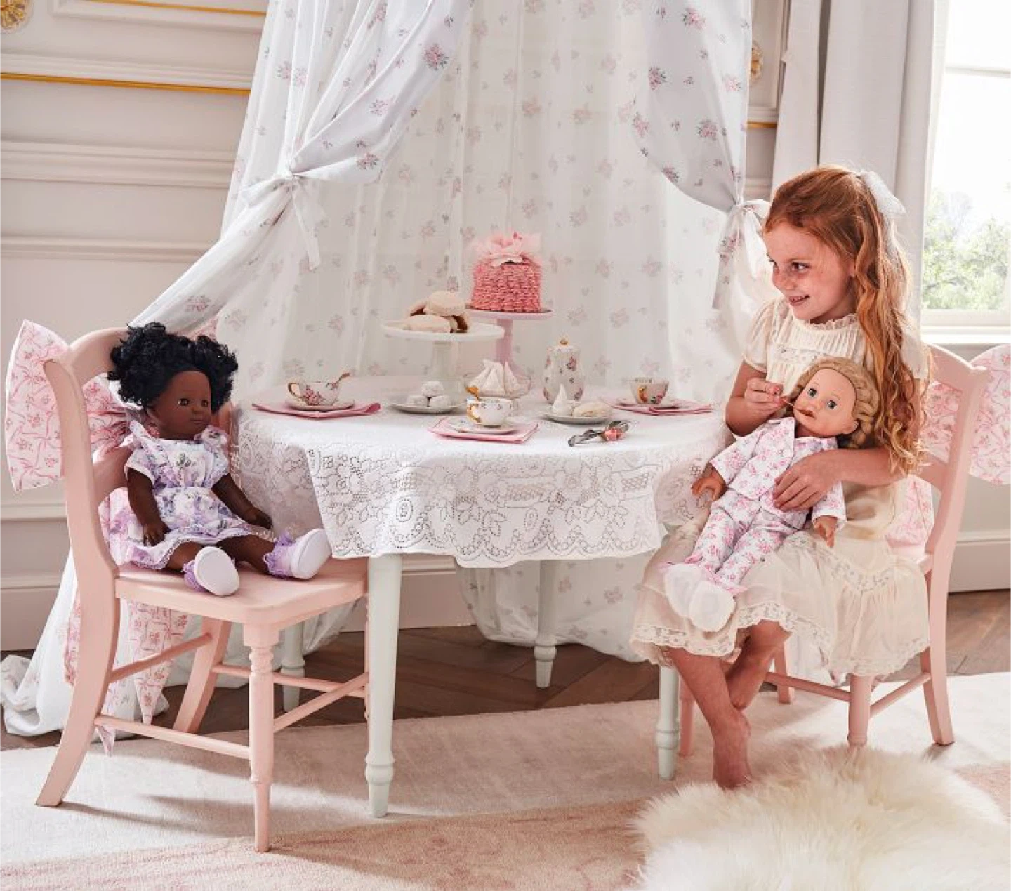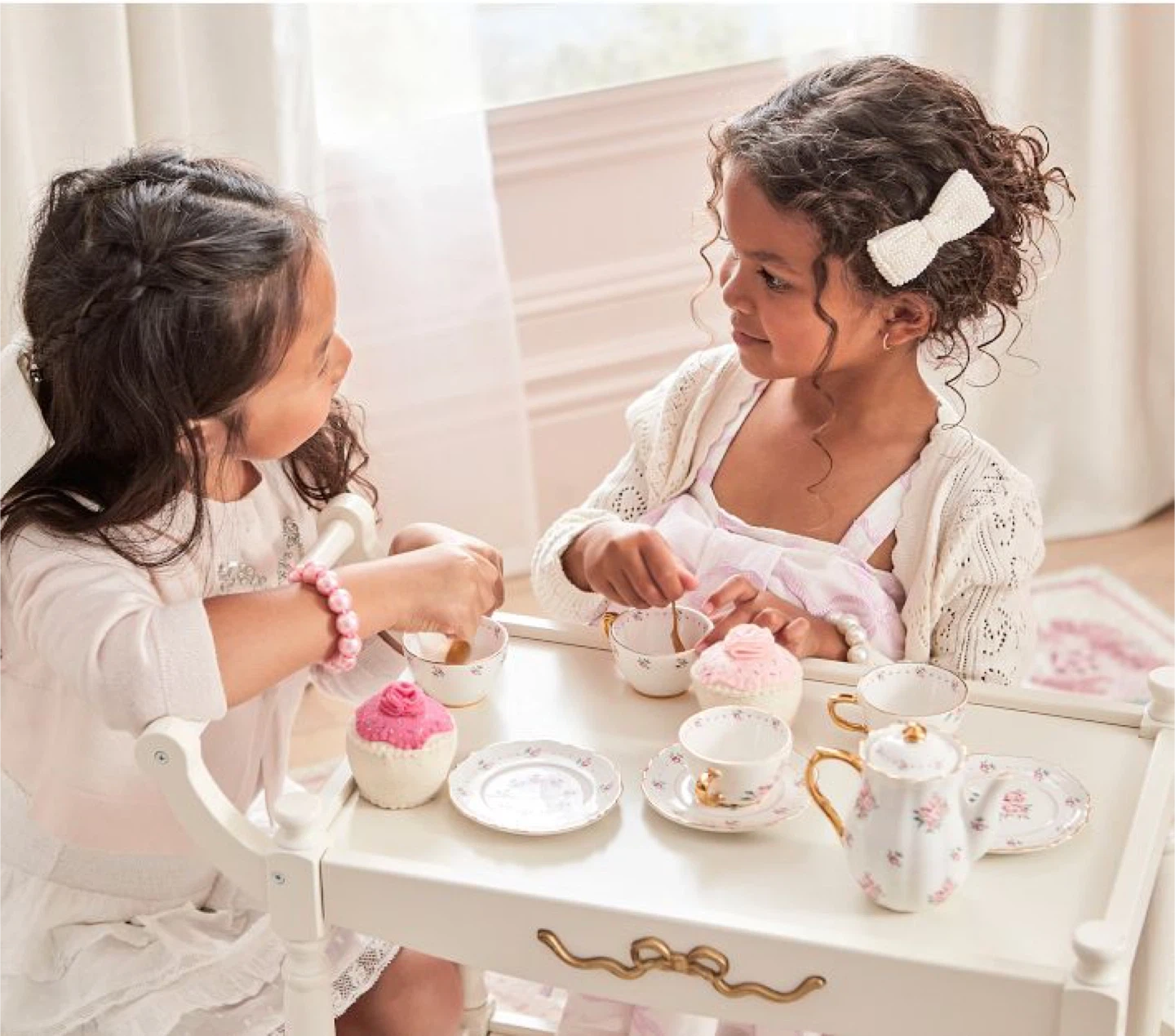 Expertly crafted from ceramic with hand-painted gold trimmings and precious pink blooms, this glossy set turns their afternoon tea party into the most delightful event. The elegantly styled teapot, cups, saucers and spoons encourage gathering with friends for hours of imaginative play. Designed exclusively with lifestyle brand LoveShackFancy.