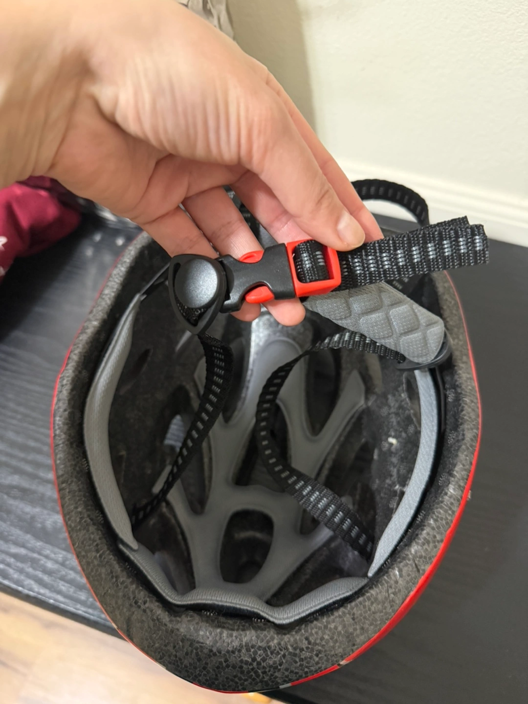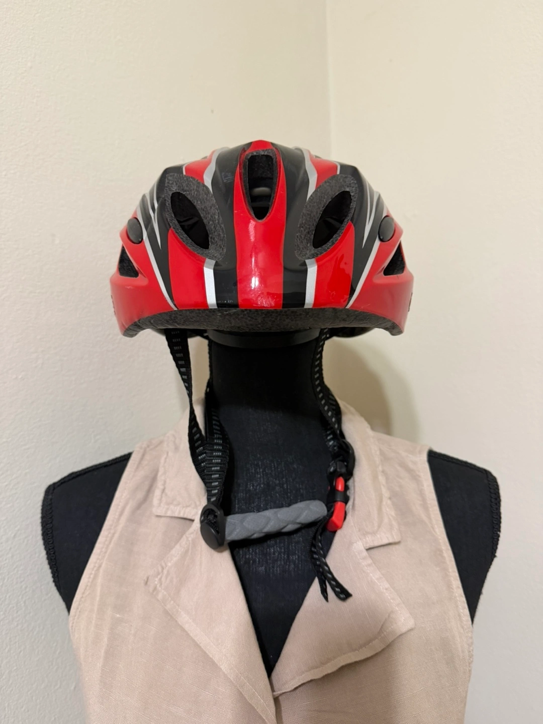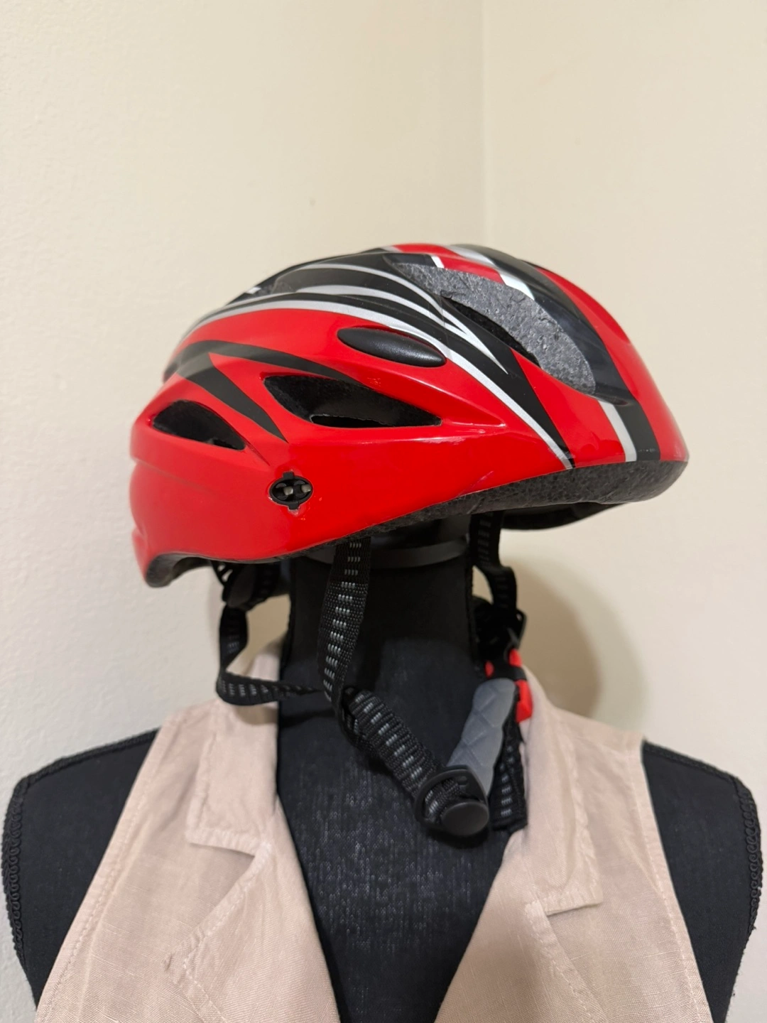 Red Bicycle Helmet with Adjustable Straps