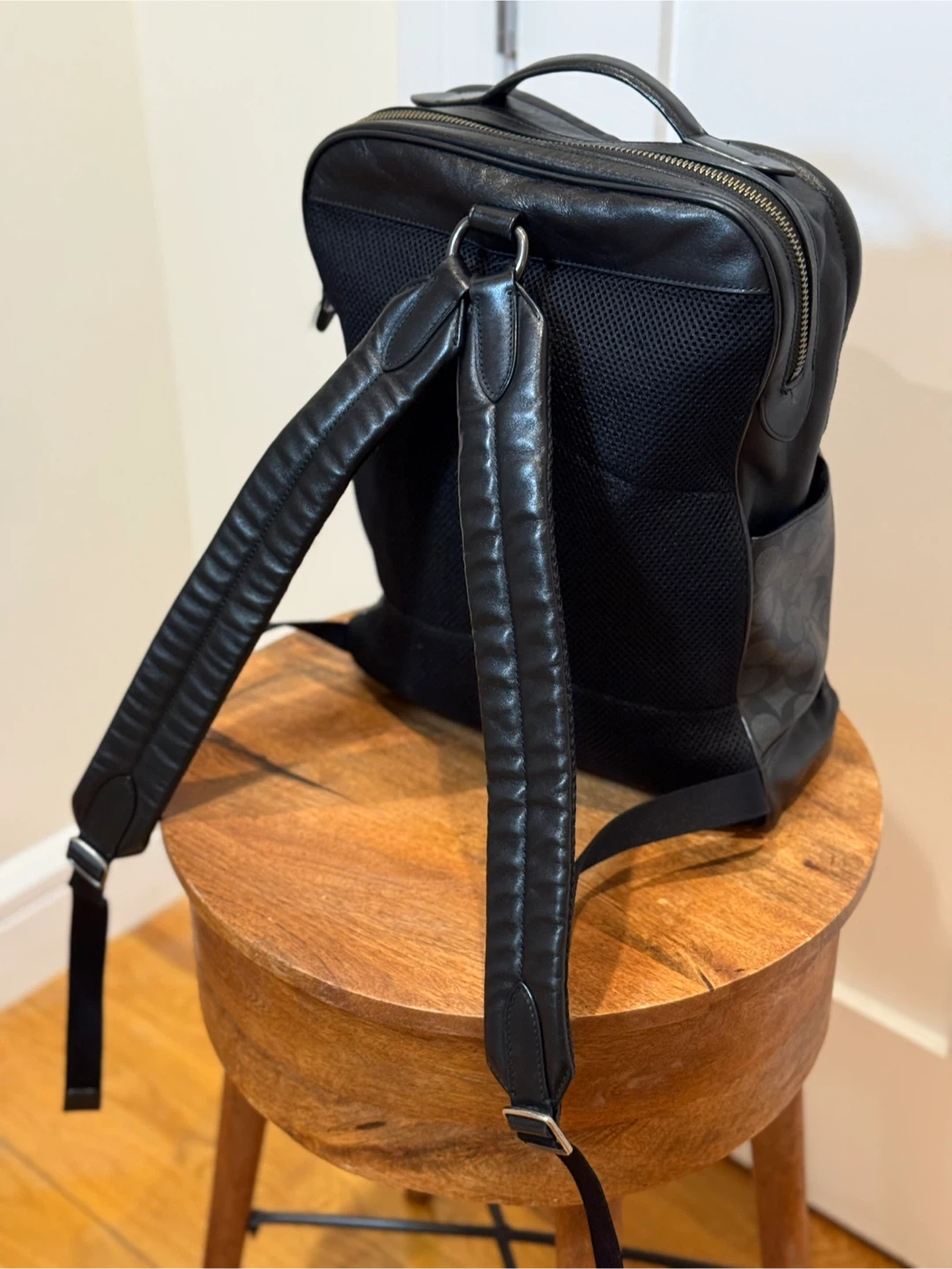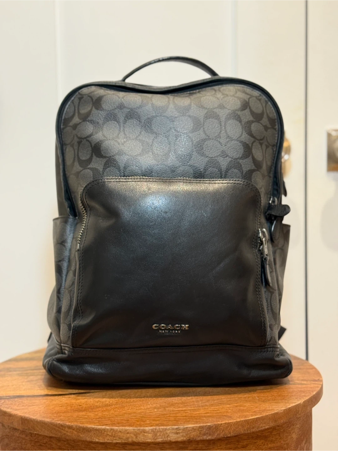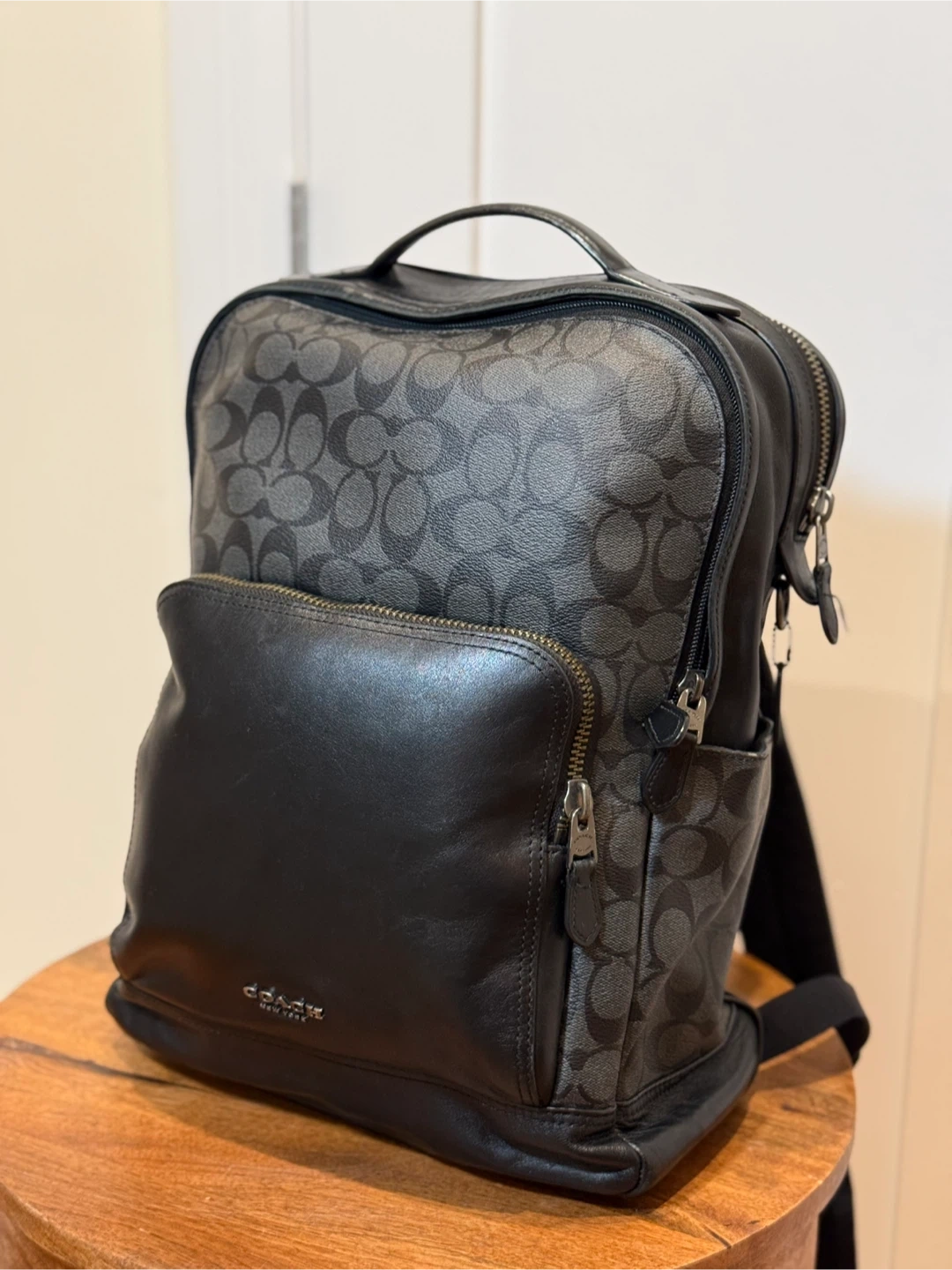 Elevate your commute or travels with the most iconic colorway from Coach. The Academy backpack is designed for the modern professional, blending the timeless charcoal signature canvas with refined black calf leather. It’s structured, sophisticated, and built to keep your tech safe while looking sharp.