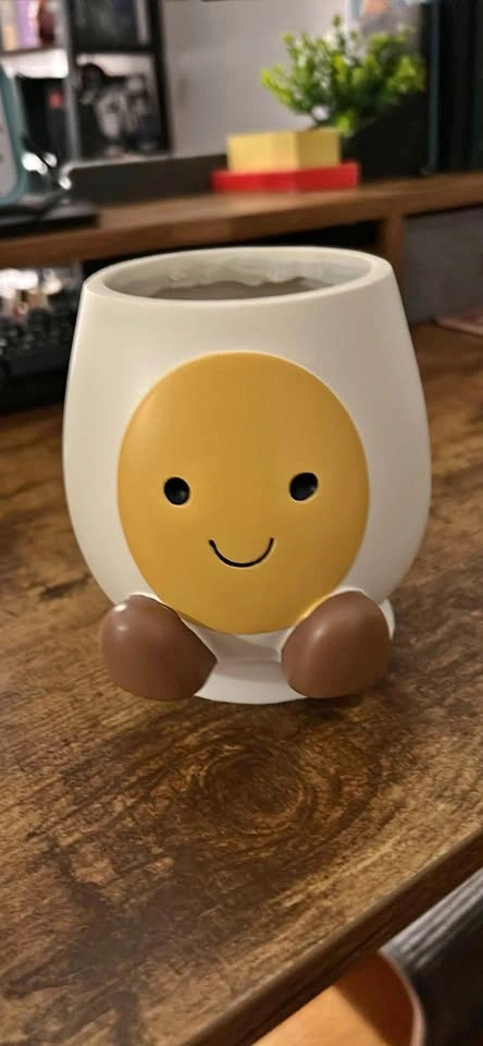 Cute small sunny side egg pot with a drainage hole (and optional plug) and tray. Perfect for succulents! Never used.