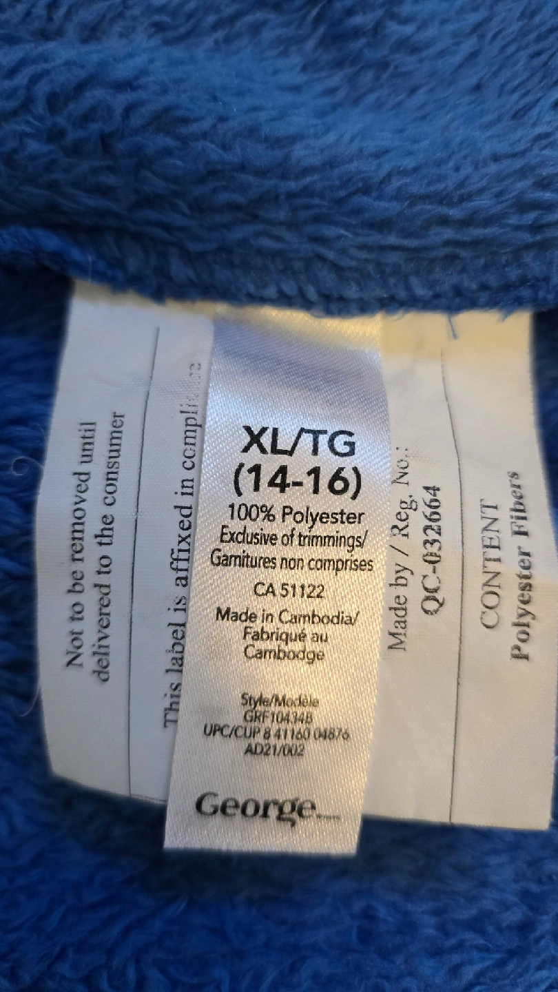 Keep your kiddo cozy with this adorable blue shark robe from George! It's a size XL (14-16) and made of 100% polyester, so it's super soft and comfy. Perfect for after bath time or just lounging around the house.