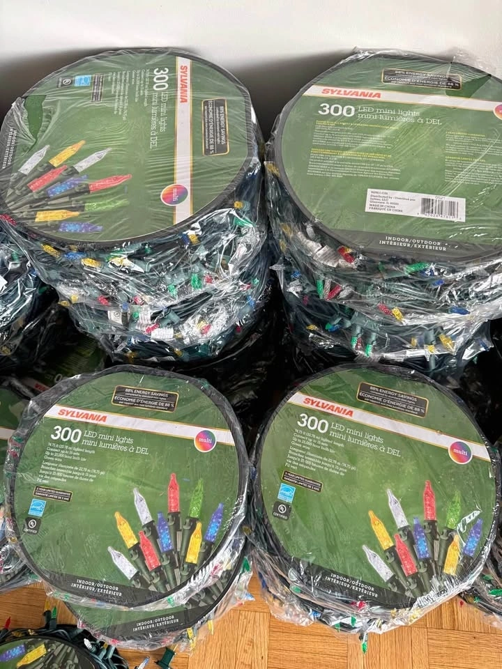This Sylvania 300-bulb set includes a green wire designed for an end-to-end setup. These miniature M5 LED multicolour bulbs can be installed indoors and outdoors. This light set features a 74.75' lighted length, a 3' lead wire and a 3' end plug. Packed on a reusable reel, this set is easy to store and doesn't need to be disentangled for next year's celebrations.