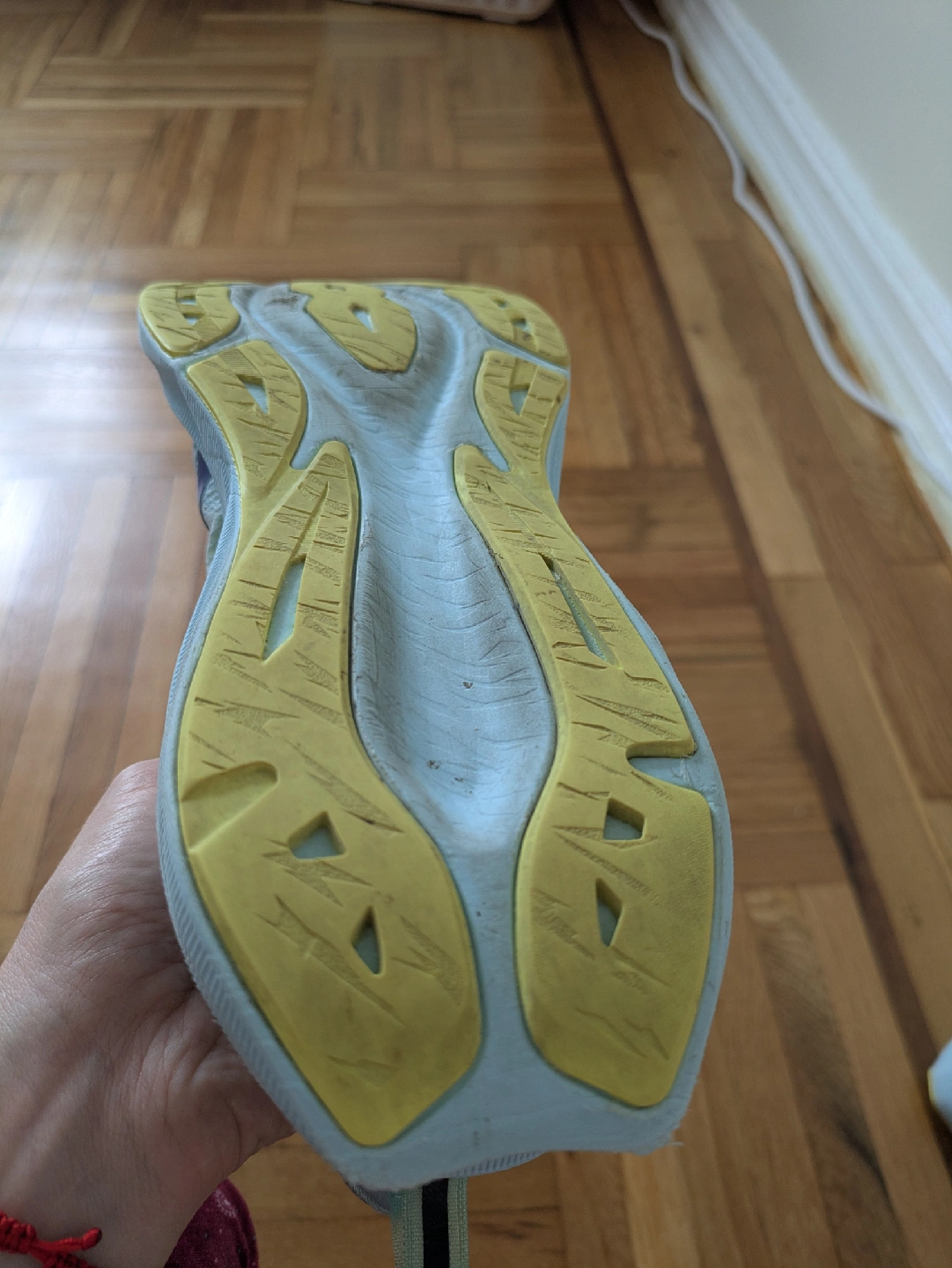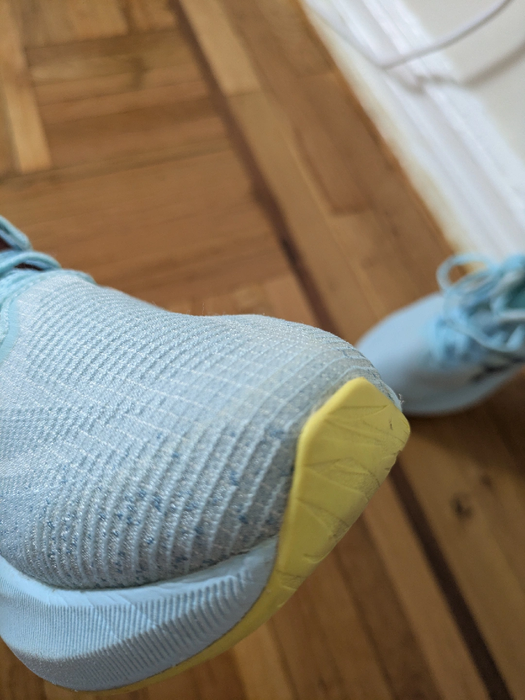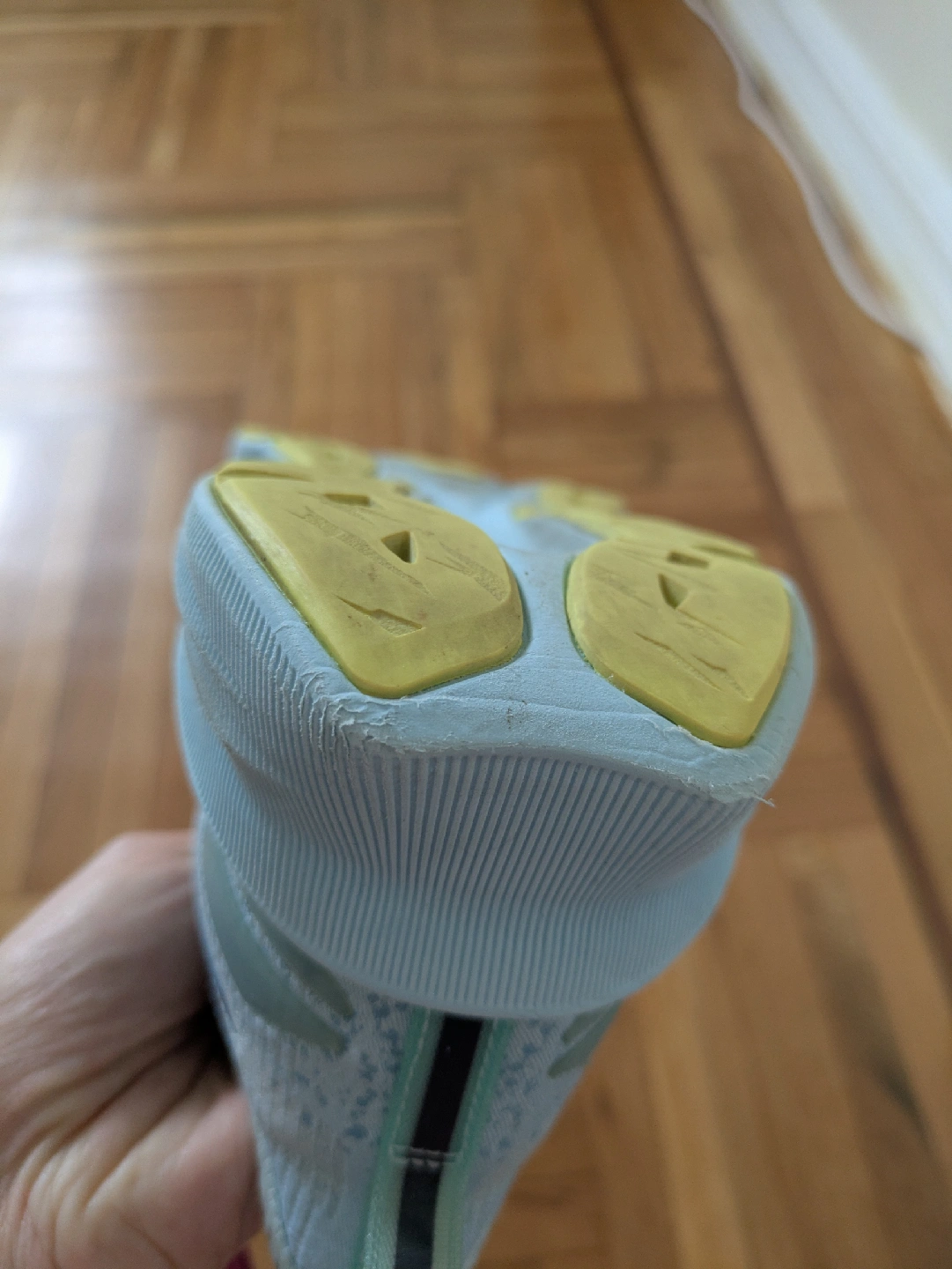 Selling a pair of ASICS Novablast 3 women's running shoes. These shoes feature a lightweight and portable design, perfect for running. The soles show some signs of wear. 27.5 cm on the insole. 10 km passed in them. After barefoot shoes, my foot expanded and I want other shoes. I washed them in Castile soap, cold water. Sell clean!!!