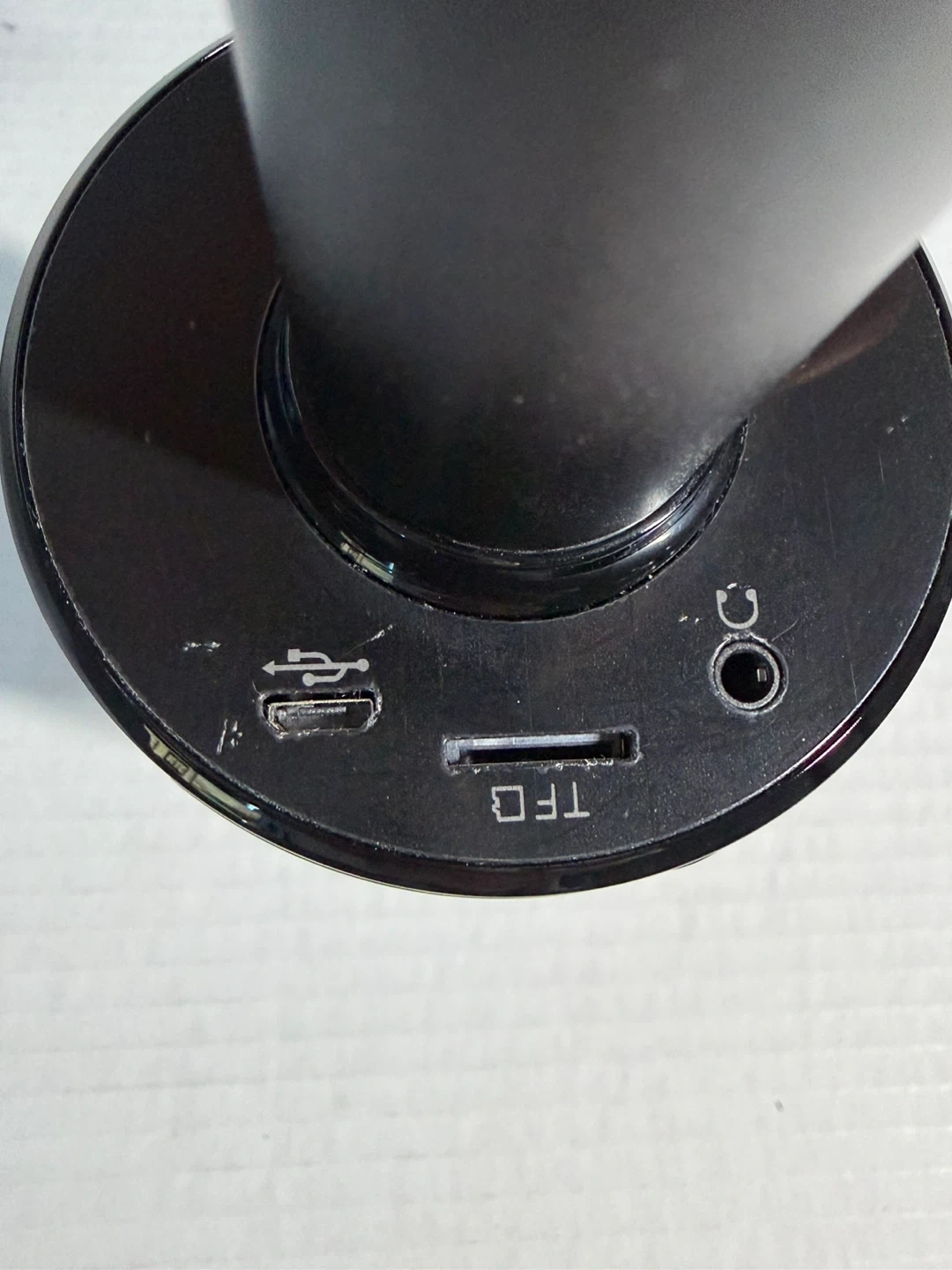 This BONAOK karaoke microphone is black and portable. It features multiple input options including USB, TF card, and DC power. It's great for singing along to your favourite tunes anywhere you go!