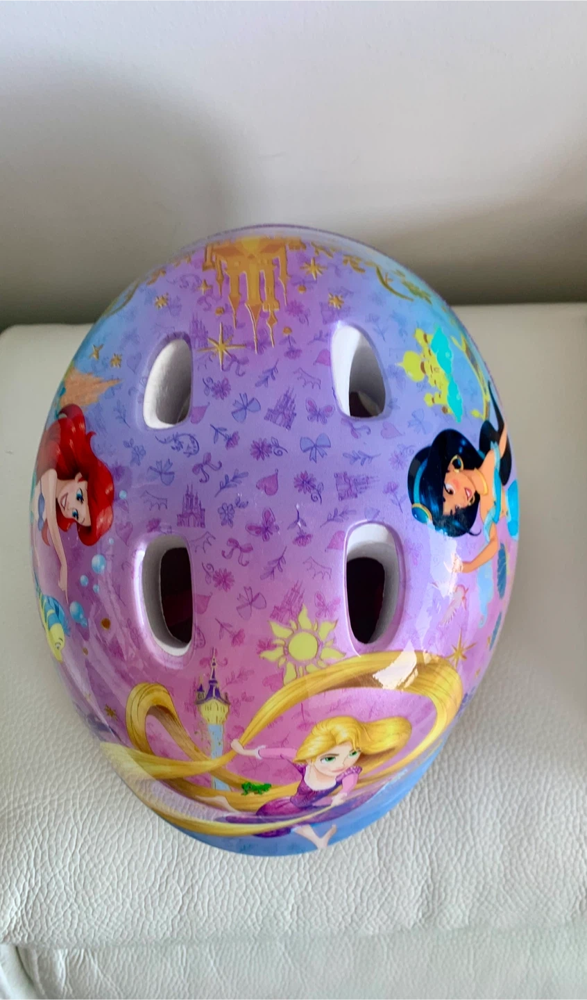 Kids' bike helmet featuring Disney princesses Ariel, Rapunzel, and Jasmine. It's in great shape, like new and ready for adventures!