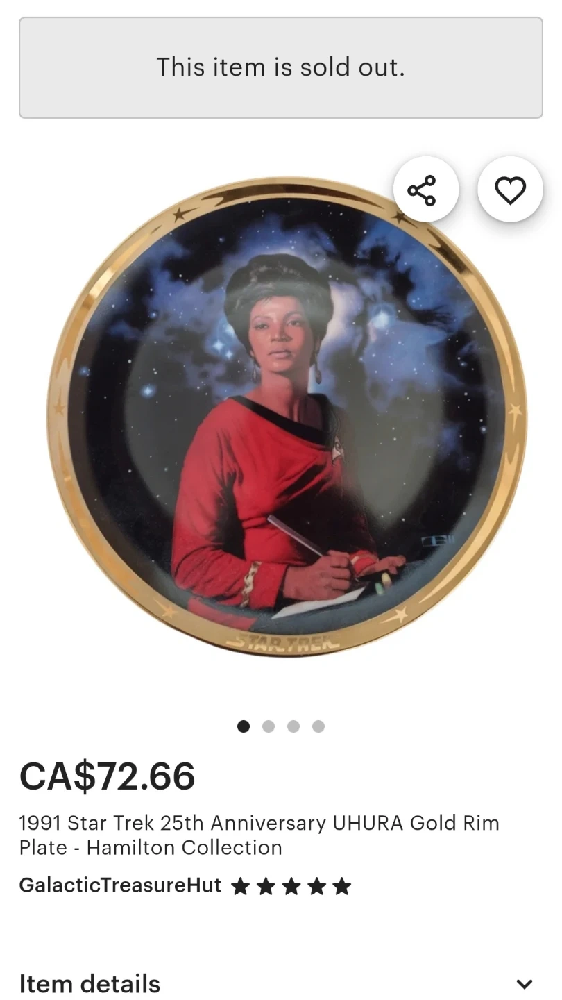 Star Trek Uhura 25th Anniversary Commemorative Plate