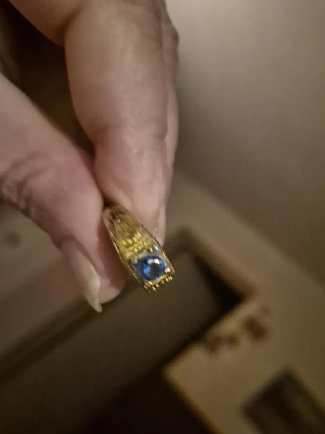 Gold Tone Ring with Blue Stone