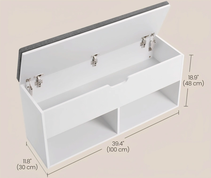 White Storage Bench with Gray Cushion
