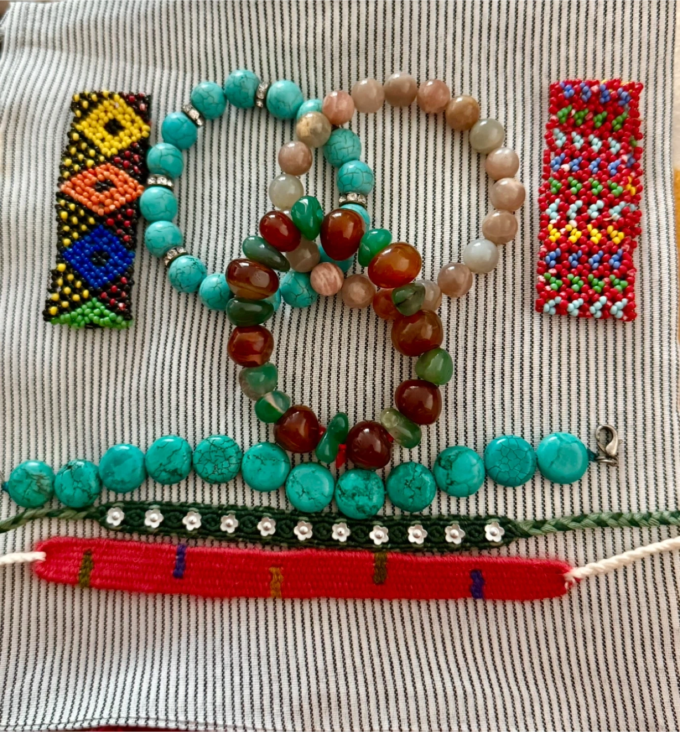 Selling a collection of handmade bracelets! There's a variety of styles, including beaded and woven designs. They add a unique touch to any outfit and are perfect for stacking or wearing alone. Check out the photos for a closer look! $4 each