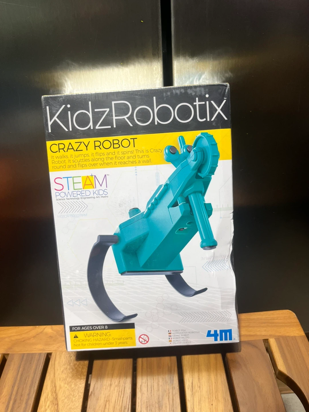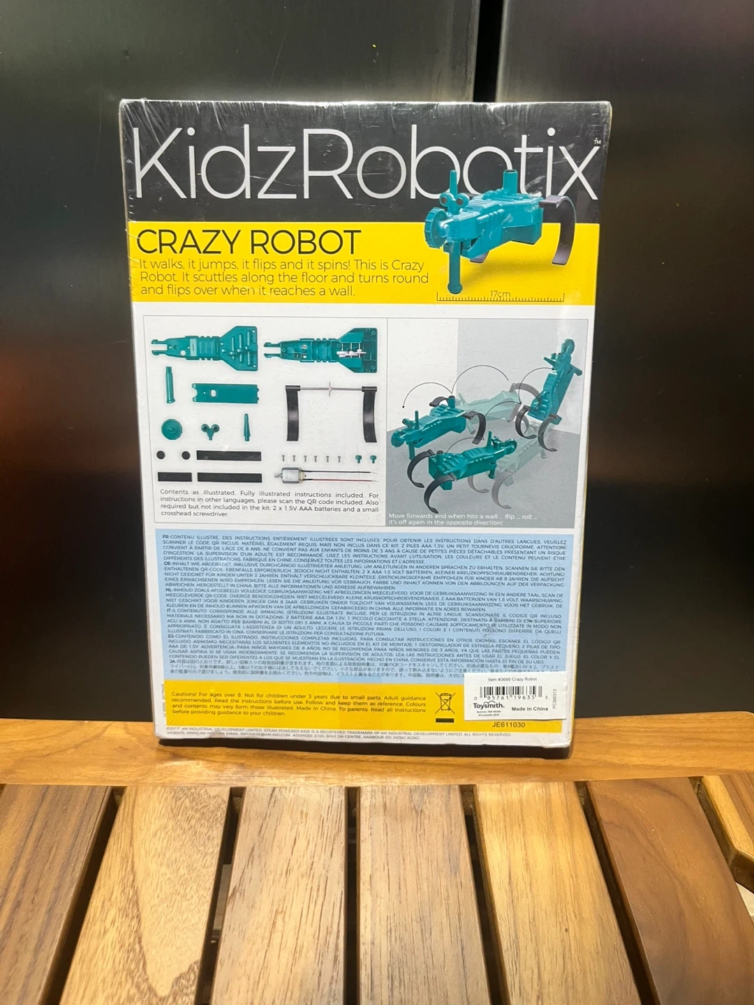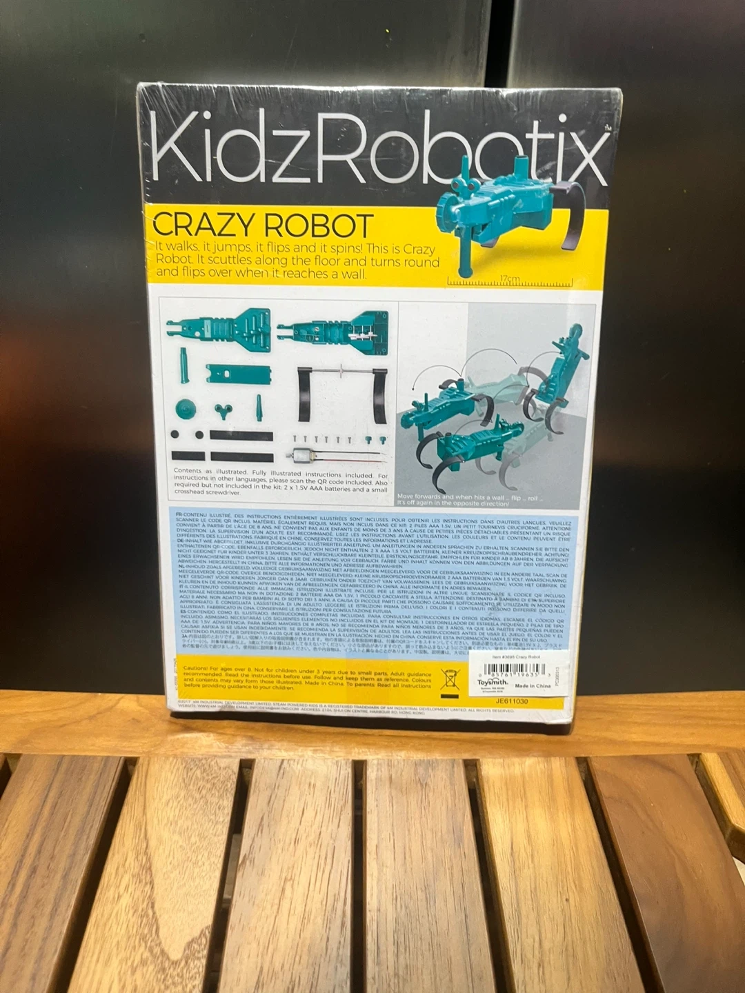 Selling a brand new KidzRobotix Crazy Robot in its original box! This fun robot walks, jumps, flips, and spins. It scuttles along the floor and turns round and flips over when it reaches a wall. It's a great STEAM-powered toy for kids!