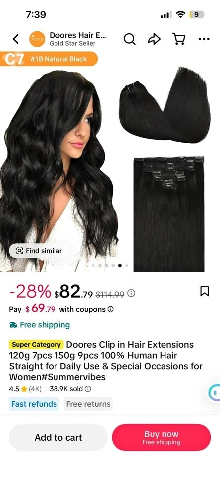 Doores Clip in Hair Extensions 120g 7pcs 150g 9pcs Human Hair