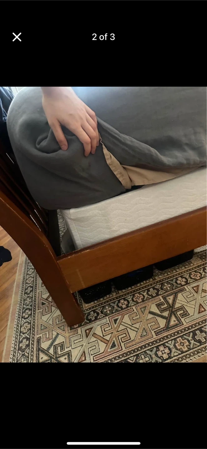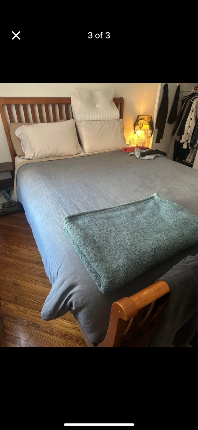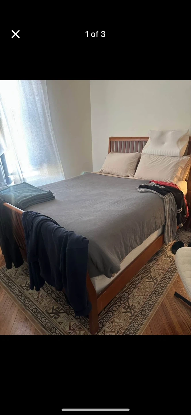 15Selling a queen size bed frame, solid wood. Queen mattress in good condition - primarily used in guest room, box spring. Sold as set or separate - make an offer! Pick up. Matching nightstand, rug, sheets, pillows, duvet, and duvet cover also available if desired. Let’s make a deal :)