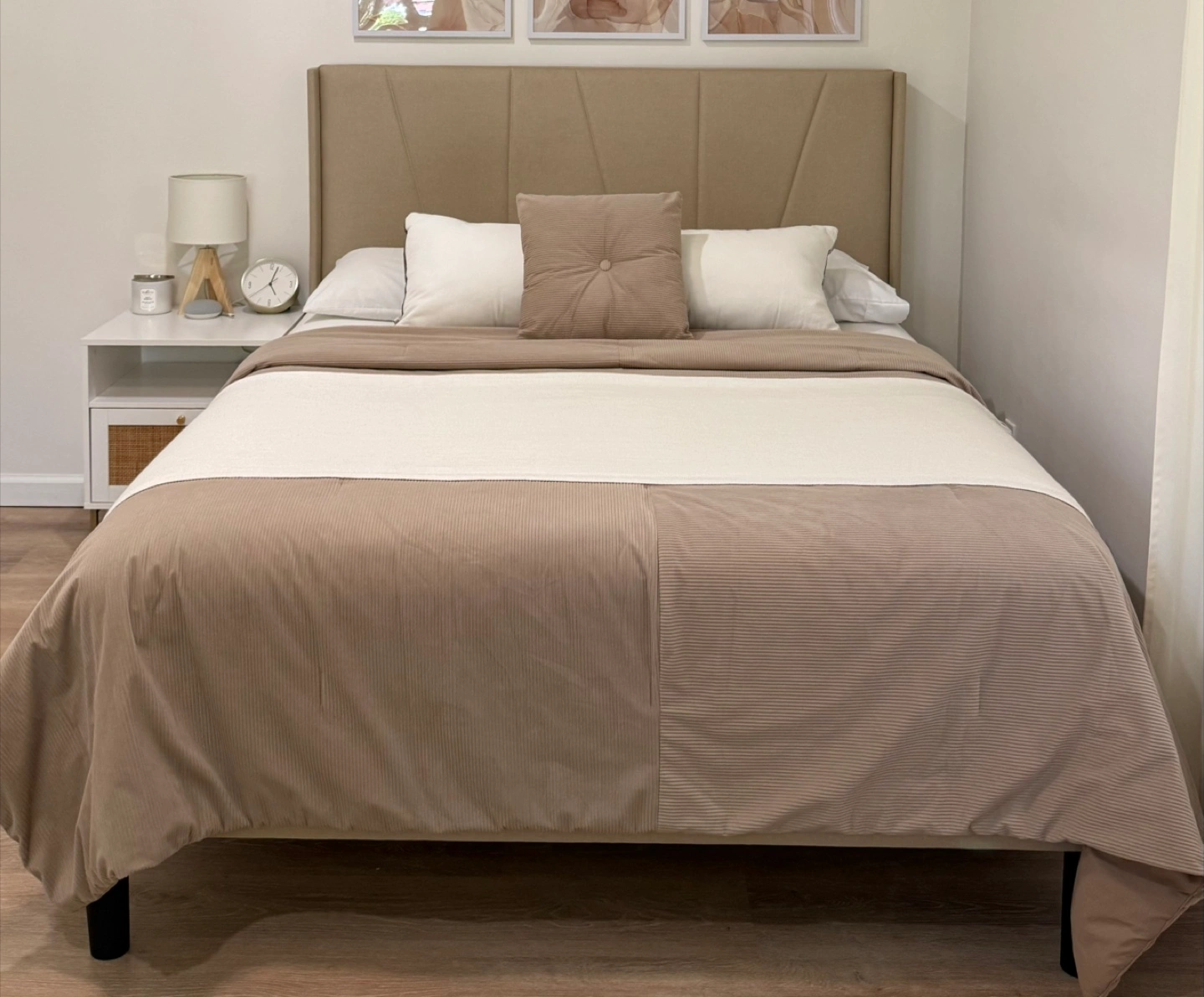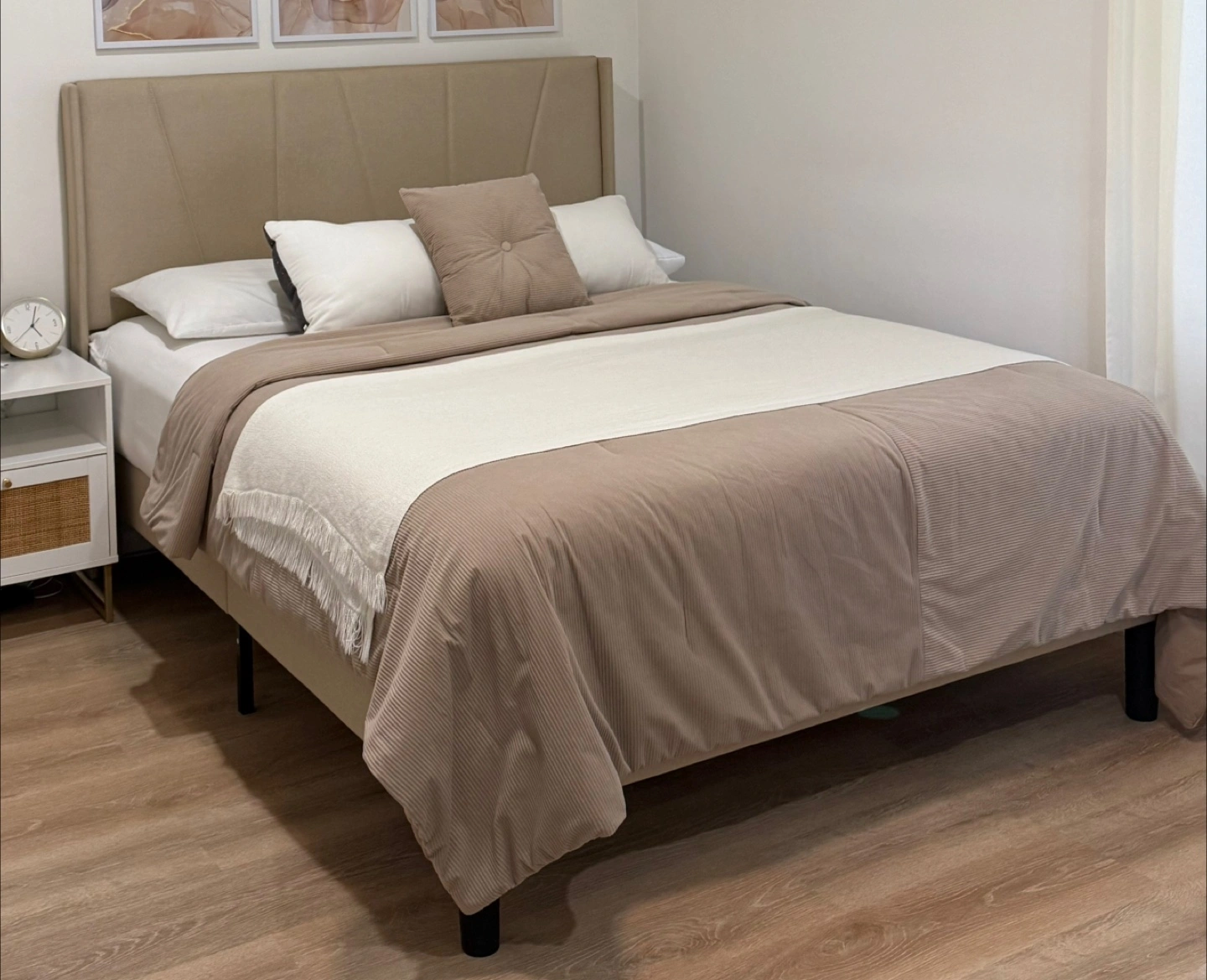 Upgrade your bedroom with this beautiful Queen Upholstered Bed Frame with Headboard. ✔ Condition: Like New - Gently used (under 2 years), in excellent shape. ✔ Includes: (Queen size) Frame + Upholstered Headboard. Mattress available upon request. ✔ Original Price: $245 ✔ Listing Price: $160 (Negotiable) ✔ Color: Beige ✔ Material: Upholstered fabric, sturdy wooden frame ✔ Pickup: Long Island, NY Perfect for any modern bedroom! Comes from a smoke-free, pet-free home. Cash only, pickup only. Dimensions: 63" x 82" x 48" ✅ Message me if interested!