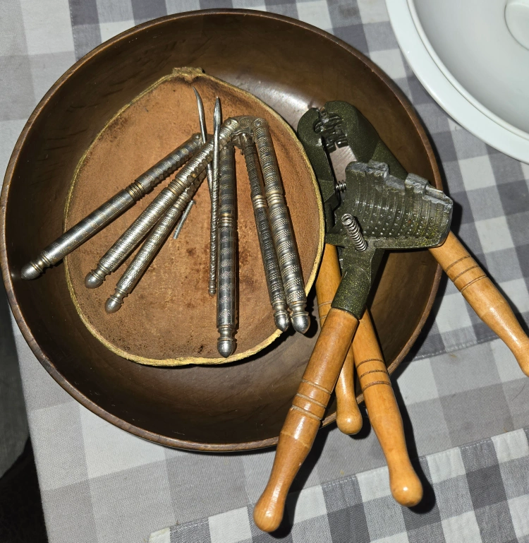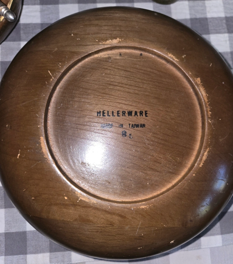 Selling a Hellerware wood bowl with a set of nutcrackers. The bowl in good condition has nutcrackers included with the bowl.