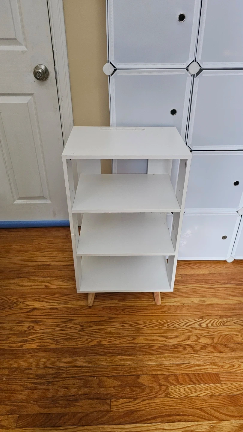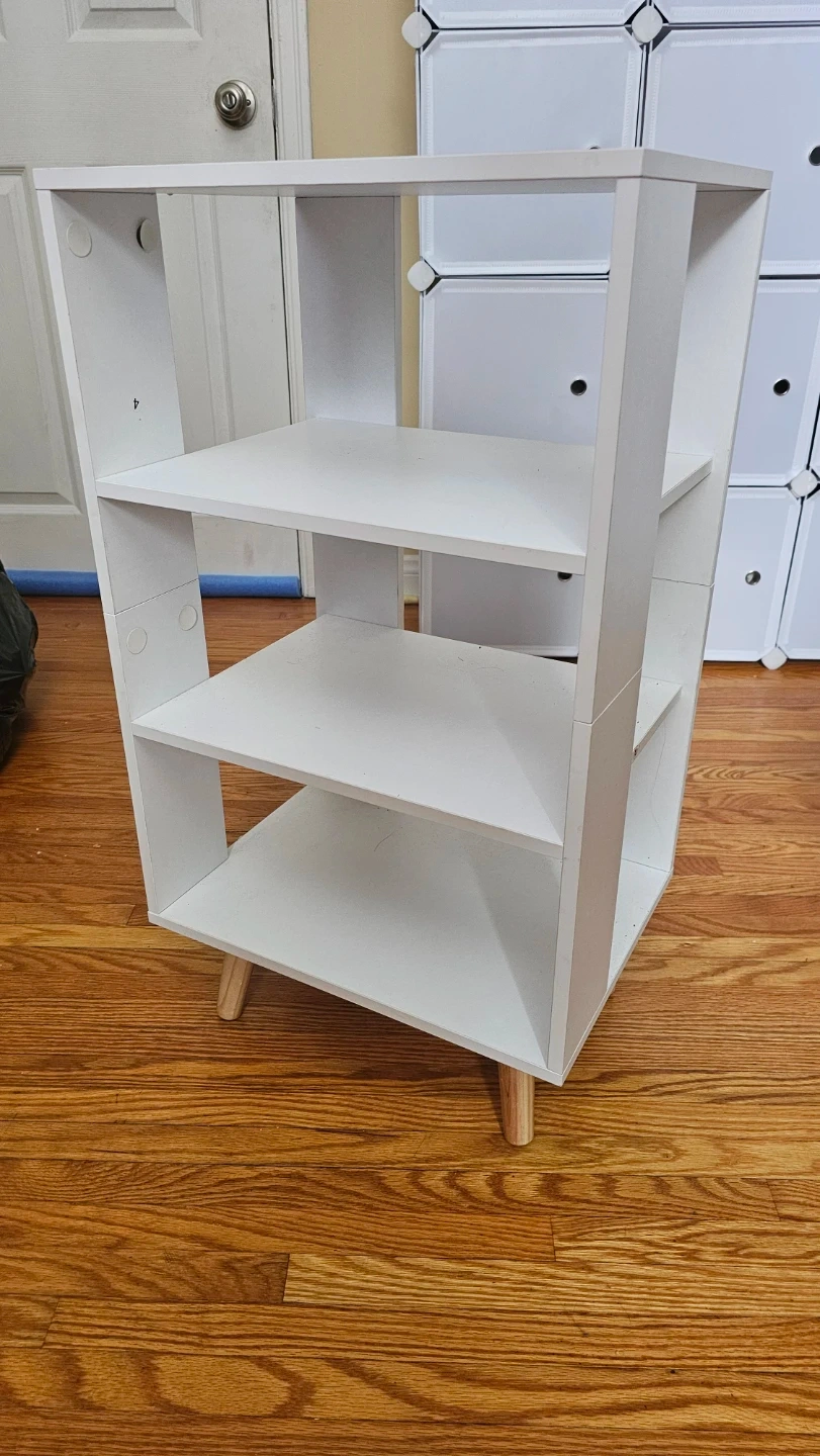 White 3-Tier Shelf Unit with Wooden Legs