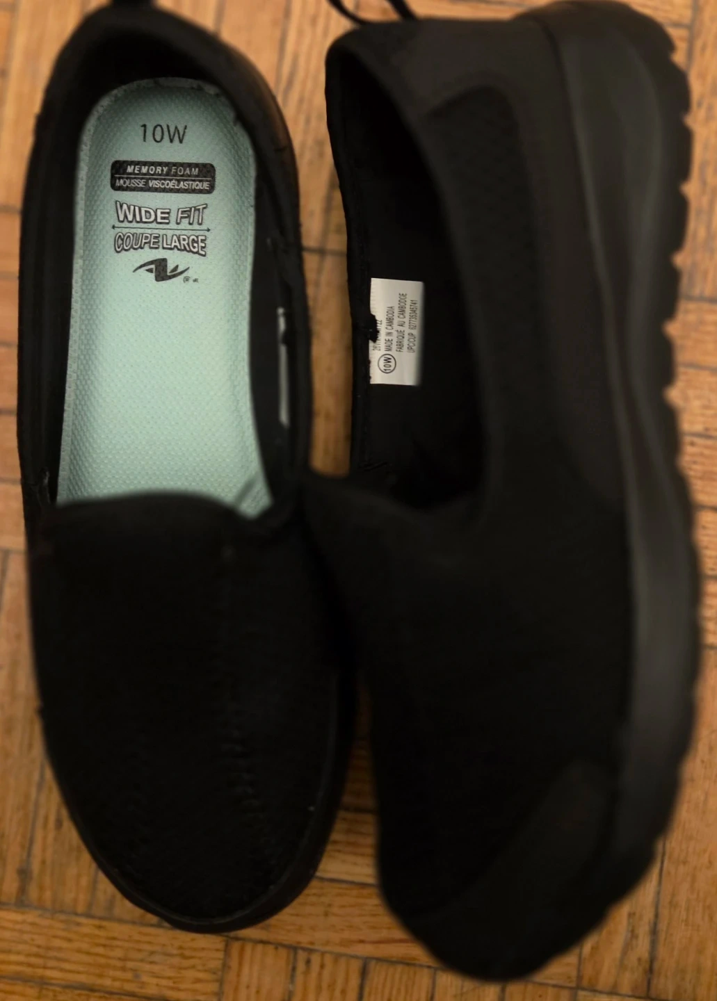 🏆Athletic Works Black Slip-On Memory Foam Shoes - Size 10W
