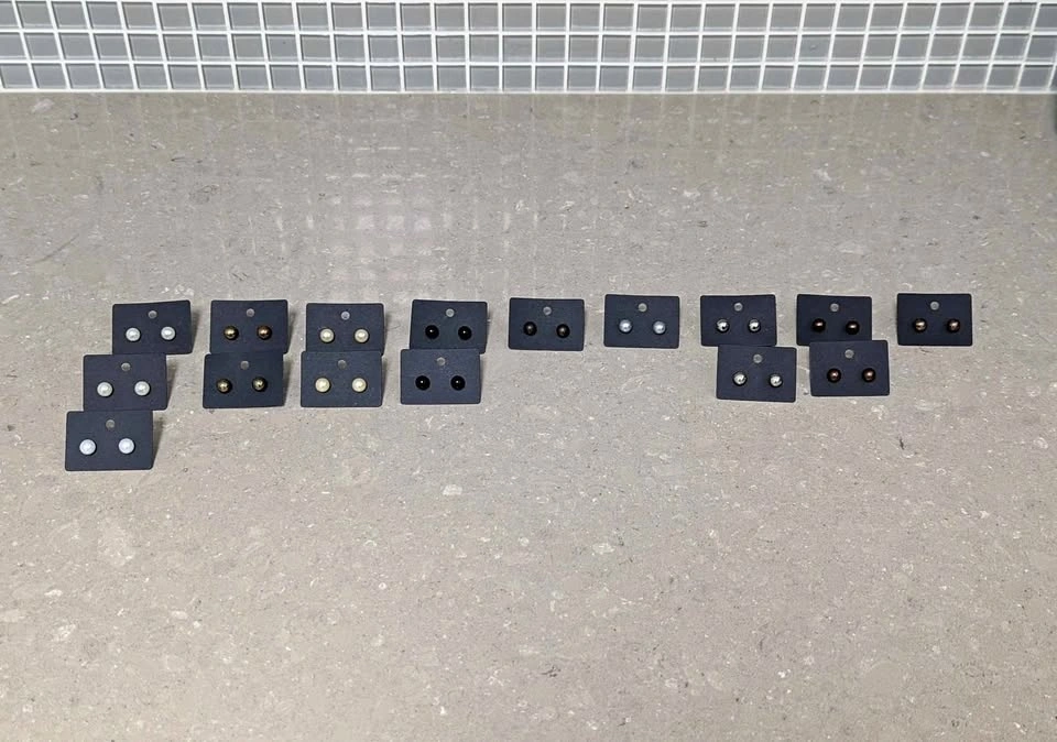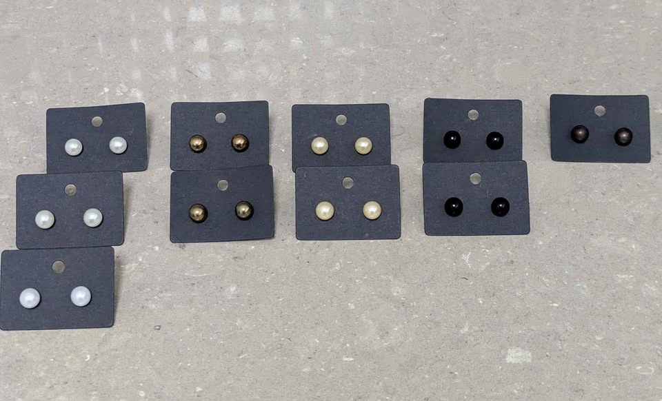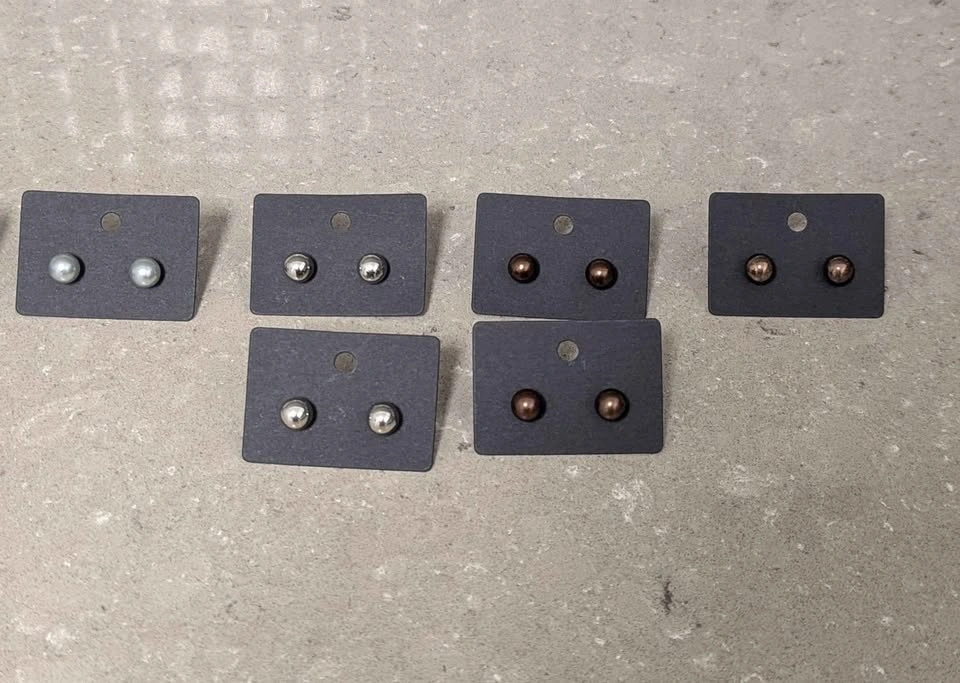 Multiple pairs of small, stylish stud earrings for sale.
