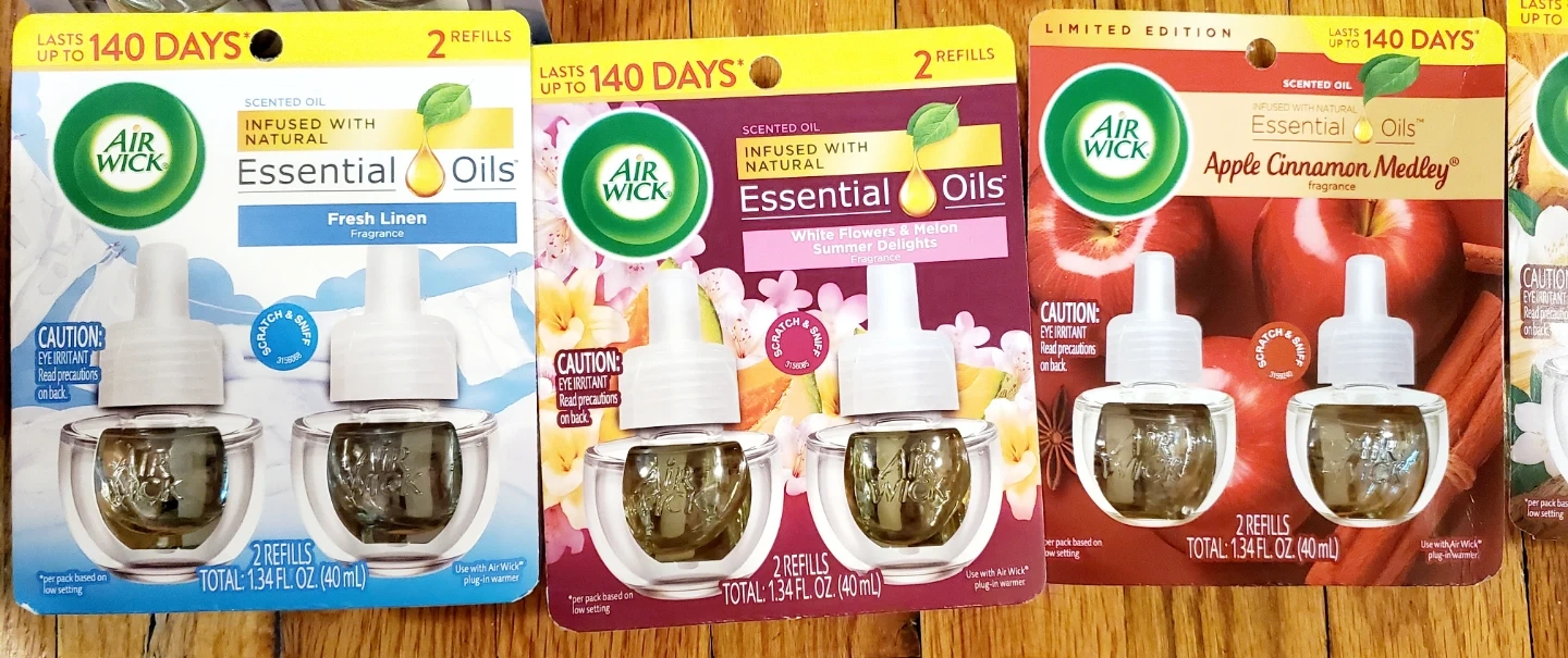 Air Wick Essential Oils plug-in air freshener refills. Each pack contains 2 refills for a total of 1.34 fl. oz. (40 ml).