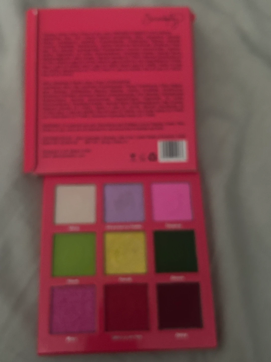 This is a vibrant eyeshadow palette with nine shades. It includes a mix of matte and shimmery finishes. Perfect for creating bold and colourful looks!