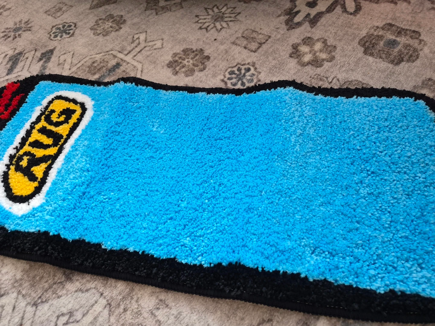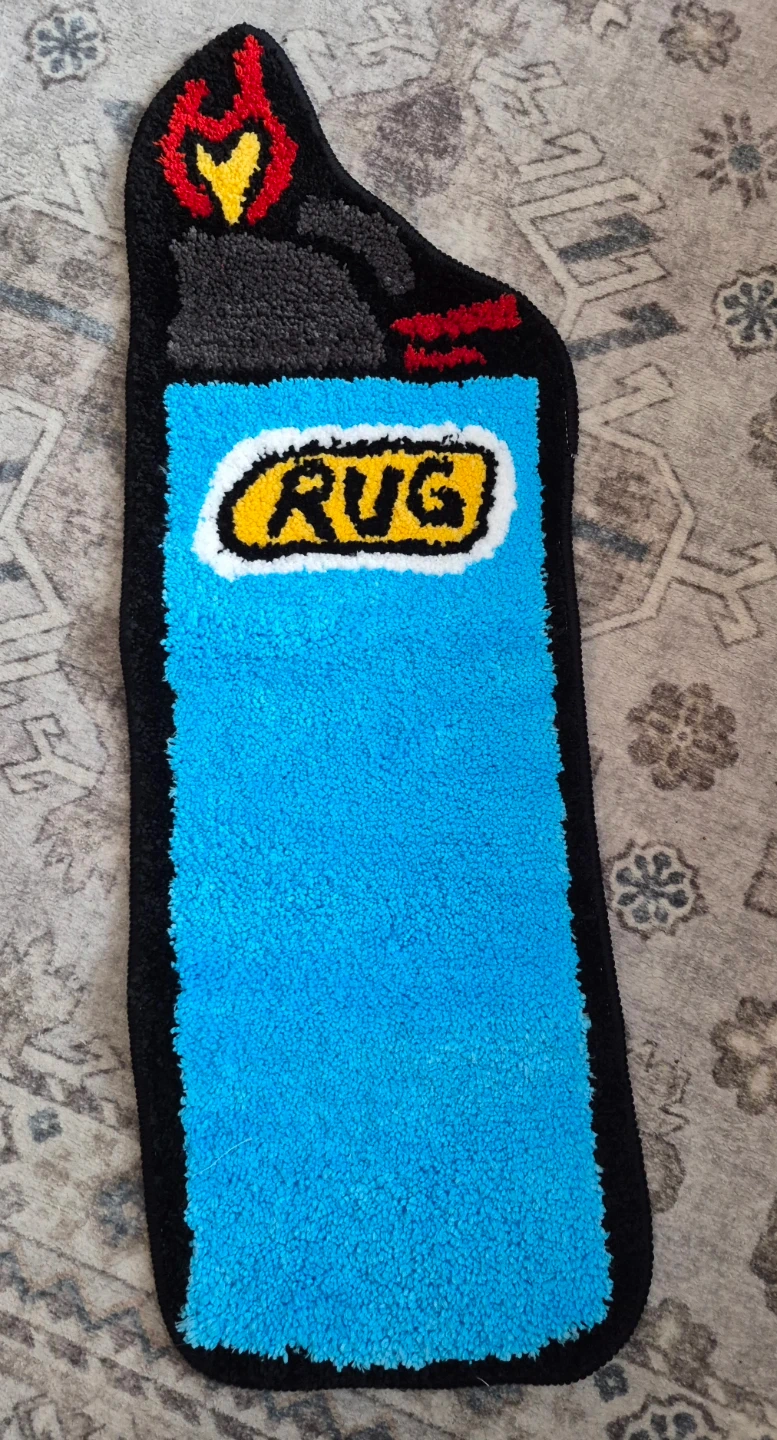 Light up your space with this unique, BIC-inspired lighter rug! This isn't your average floor mat—it’s a total conversation starter. Perfect for adding a pop of color and a touch of streetwear aesthetic to your bedroom, office, or dorm room. Featuring a vibrant blue body and a fun "RUG" logo detail, this tufted piece brings instant personality to any corner.