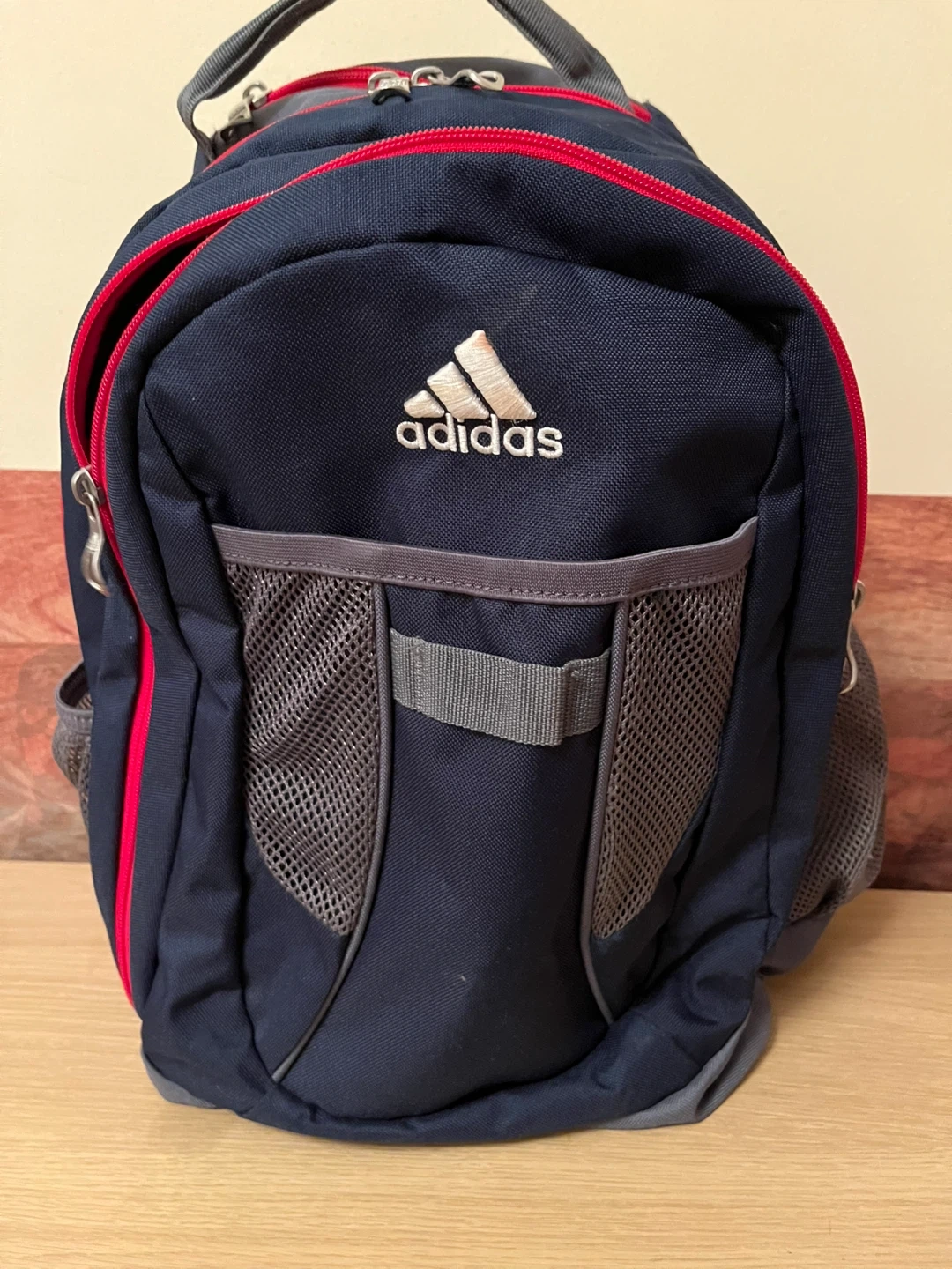 Looking to giveaway this Adidas backpack! It's a mix of navy blue and grey with multiple compartments. Great for school or day trips. In good condition and ready for a new home!