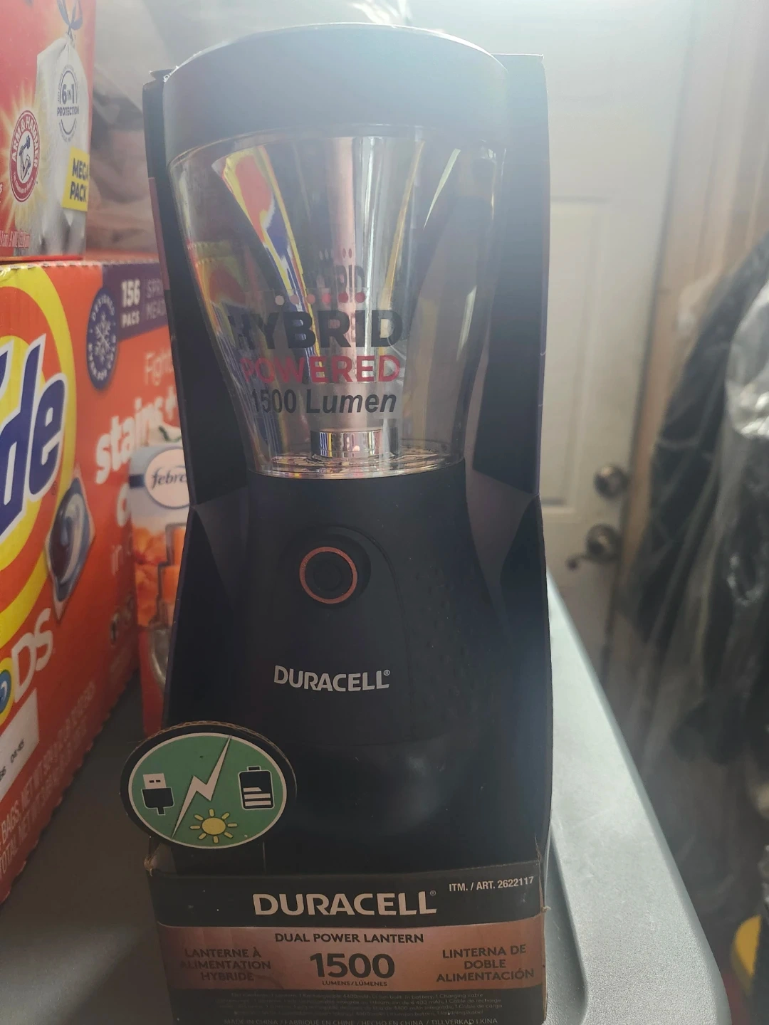 Selling a Duracell Dual Power Lantern with 1500 Lumens. It's a hybrid lantern, so it can be powered in different ways! This lantern also comes with a charging cable