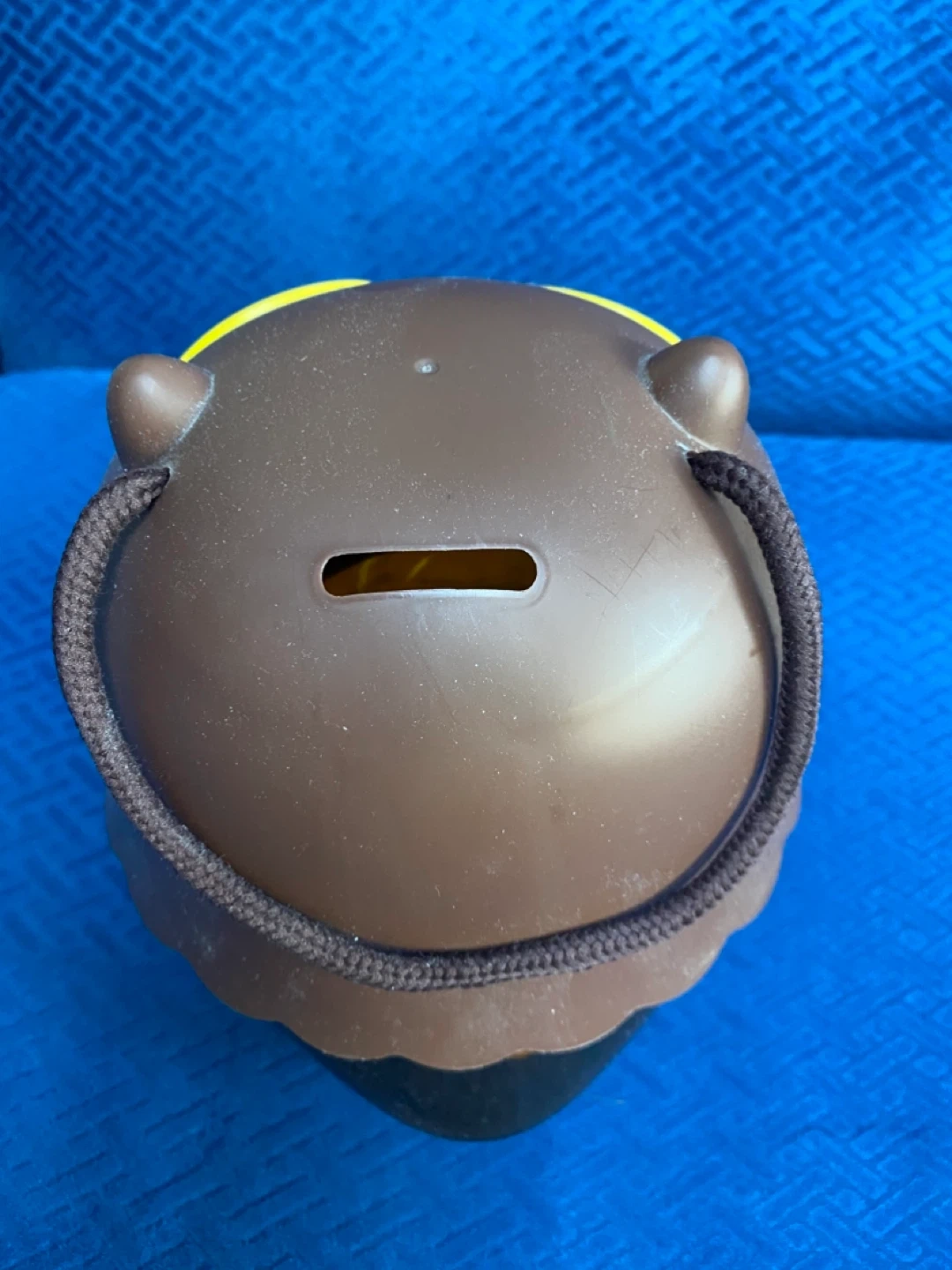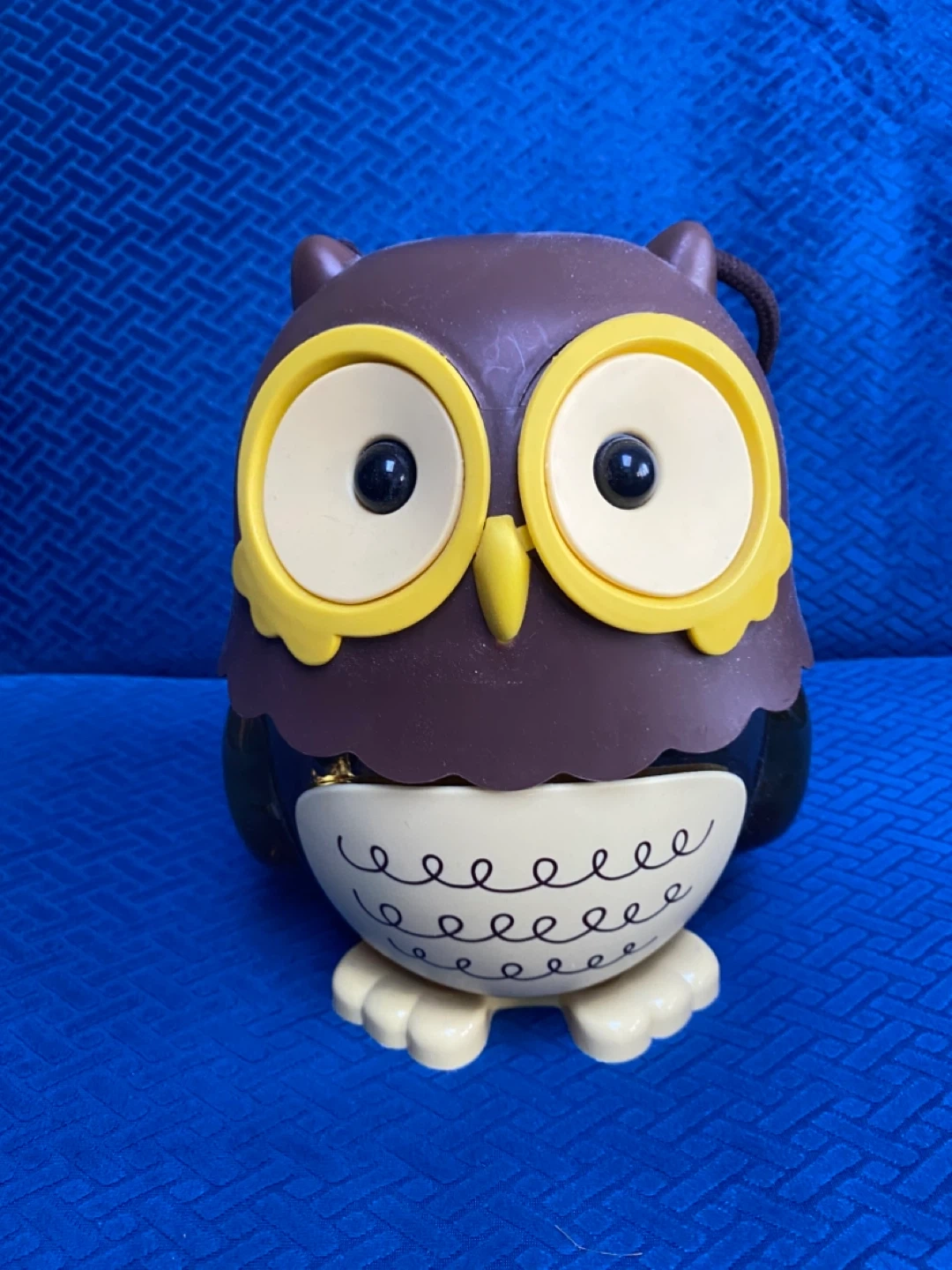 This is a cute vintage owl coin bank! It's in great shape and ready to hold your spare change. The owl has a slot on the back for coins and a removable head to access the money. It's a fun and nostalgic piece
