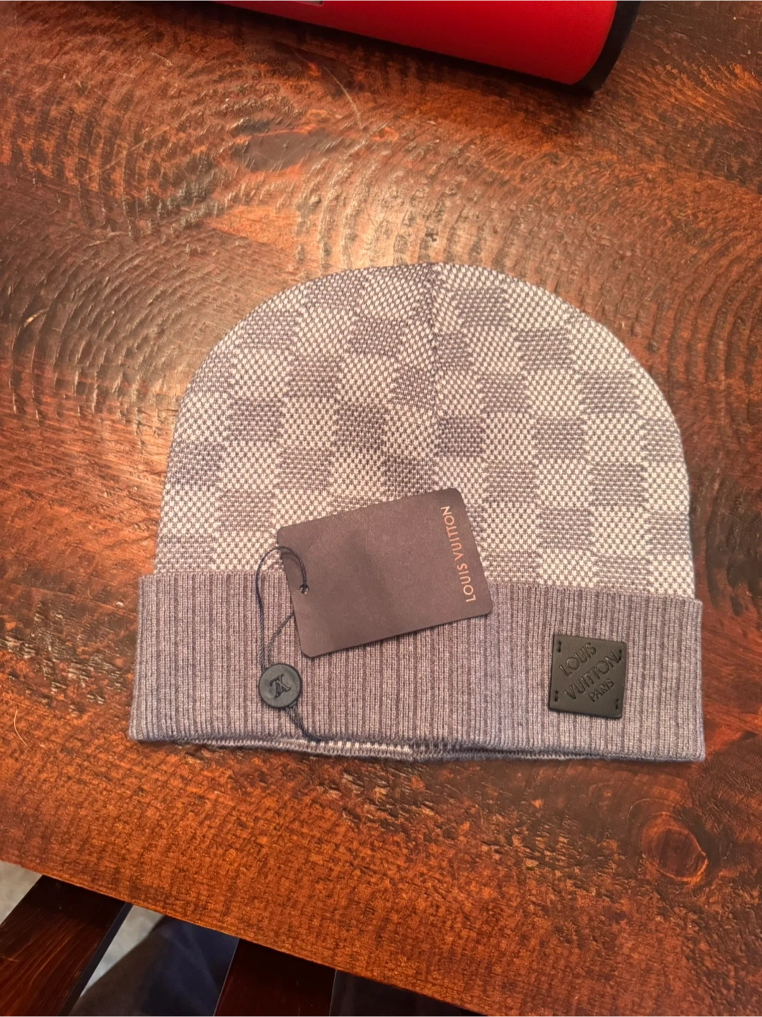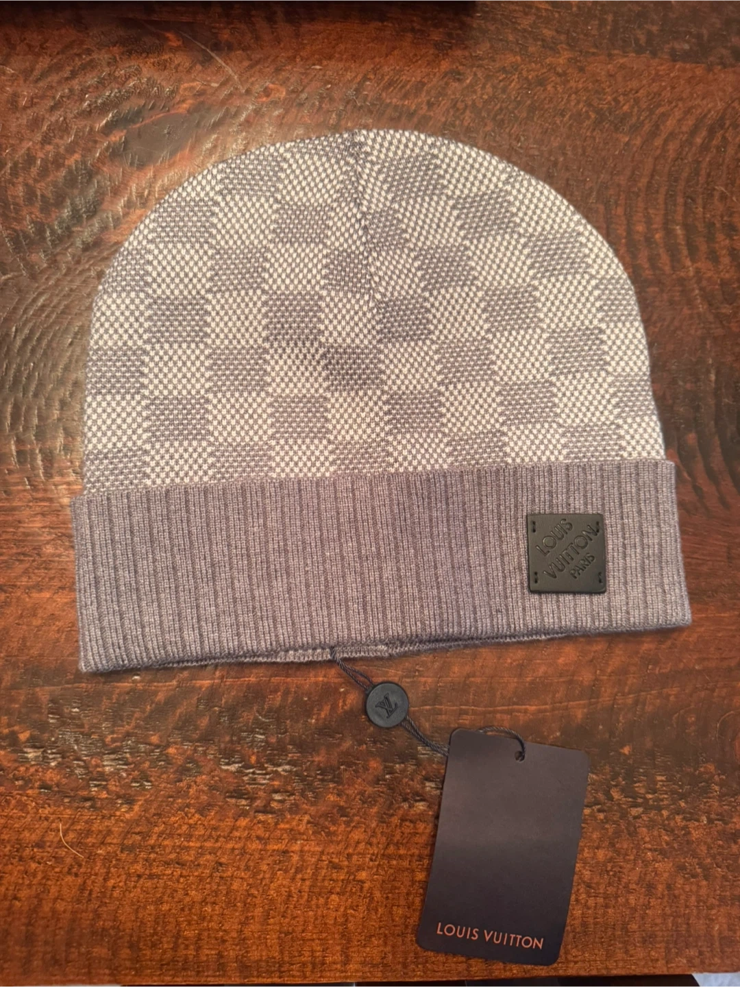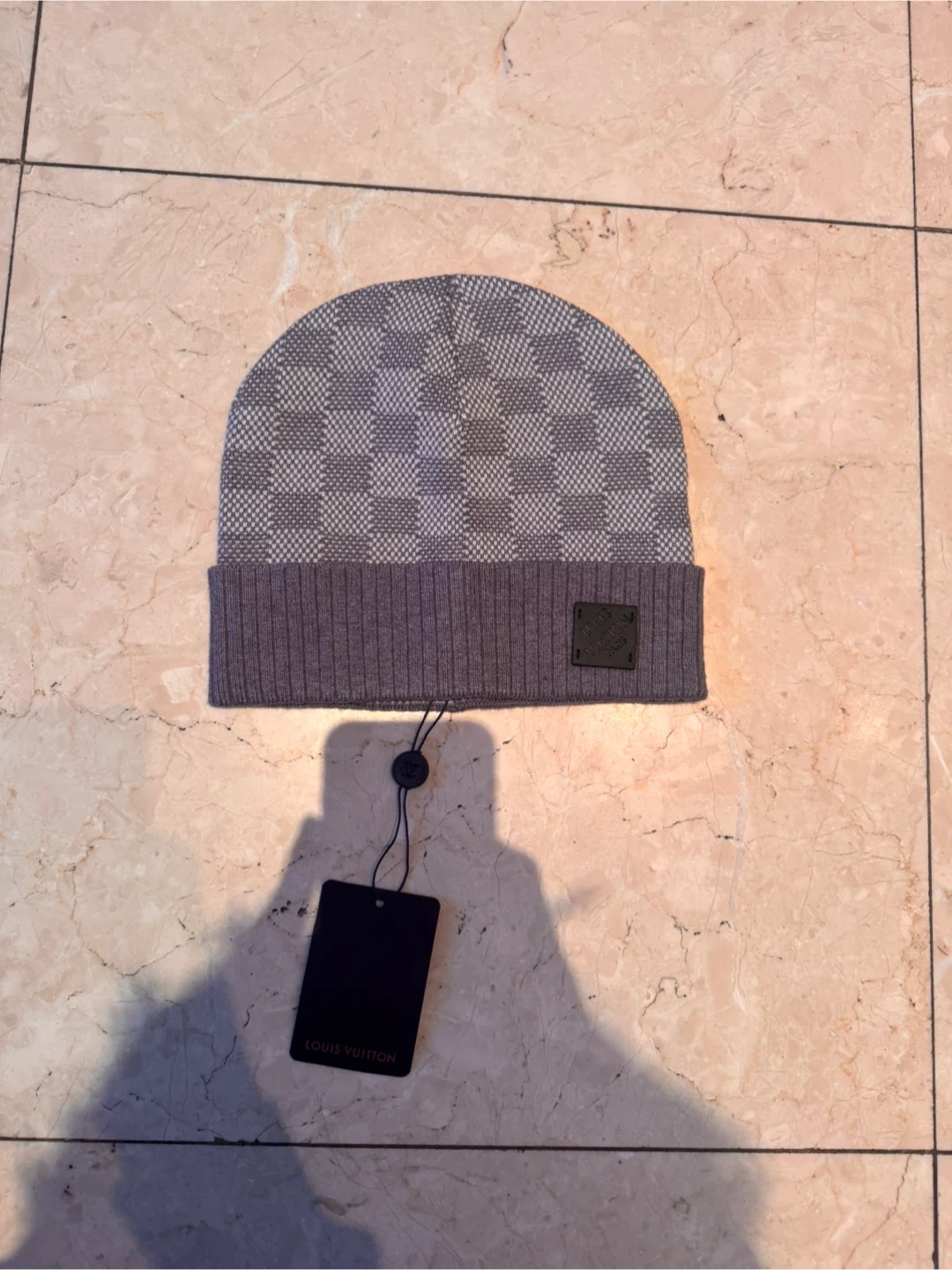 Lou V Beanie - Grey Damier Pattern