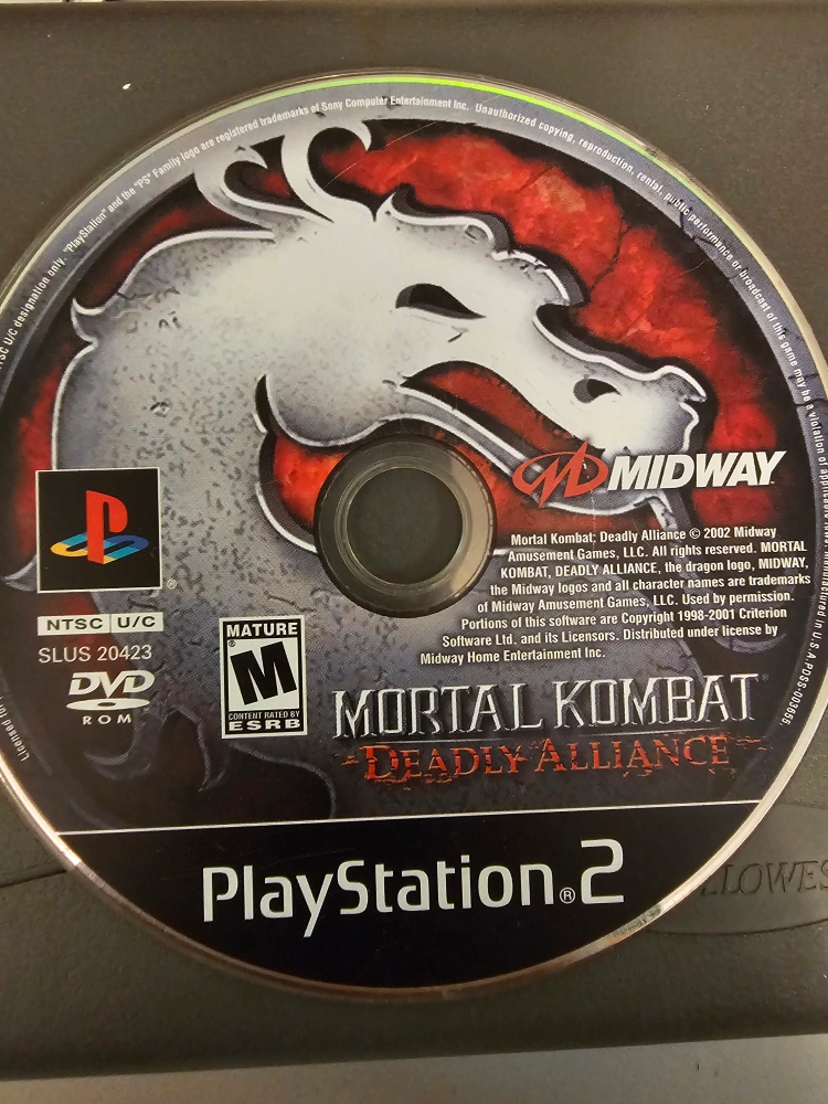 Selling a used copy of Mortal Kombat: Deadly Alliance for the PlayStation 2 (PS2). The disc has some scratches, but it should still play fine. Great for fans of the Mortal Kombat series!